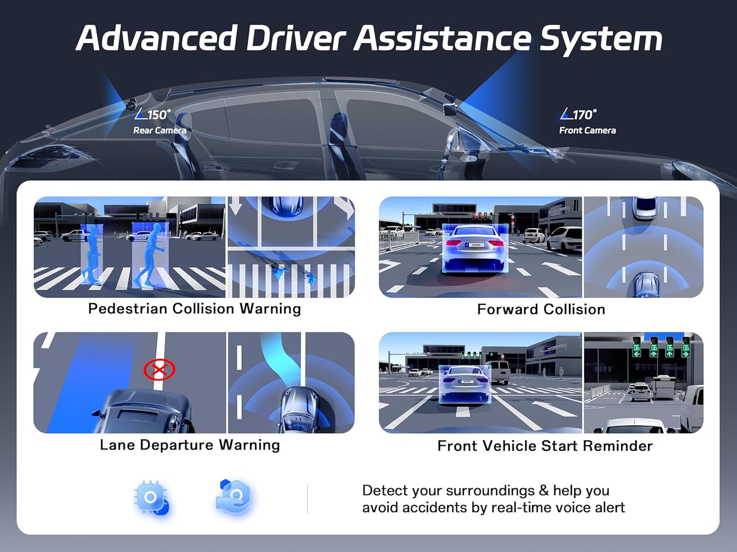 - 【Smart Driving Assistant】Advanced Driver Assistance System (ADAS) included proactive alerts for forward collision, pedestrian collision, lane departure warning, and front vehicle start reminder. Visual & audio warnings trigger at 0.8-2s reaction time. Your AI co-pilot for highway/city drives.