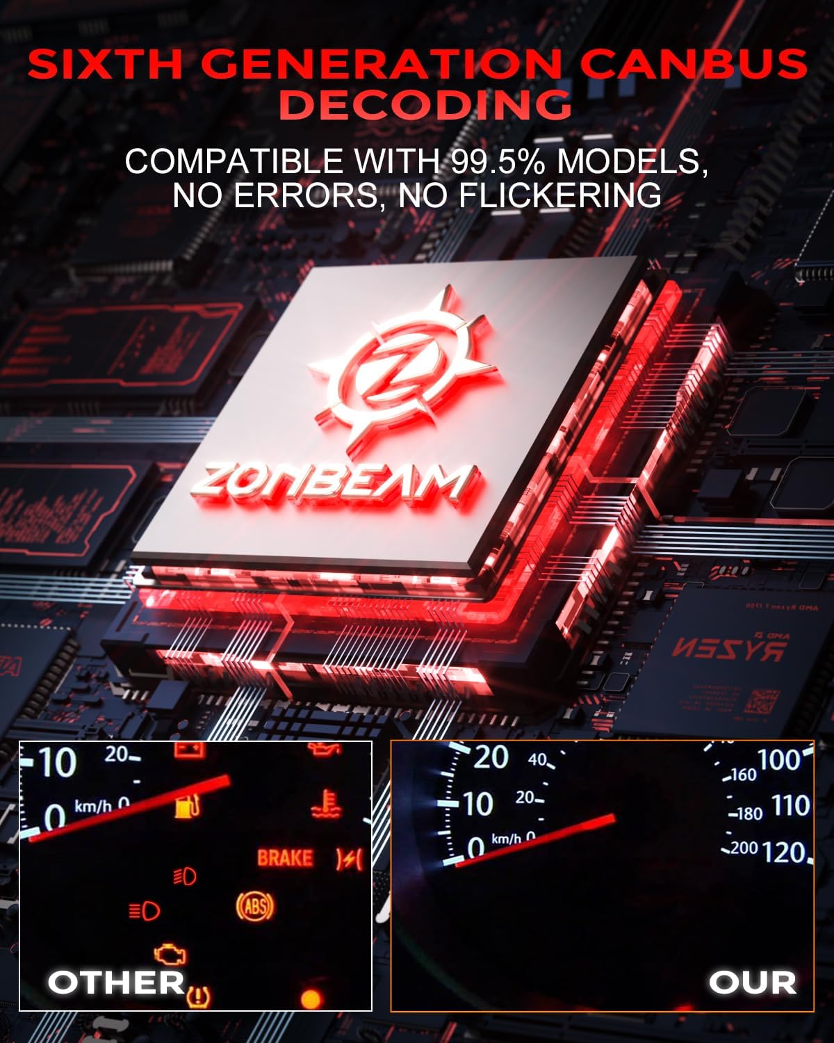 - [99.5% Vehicle Compatibility] Built-in upgraded driver and sixth generation Cabus decoding system make ZONBEAM LED bulbs easily compatible with 99.5% of vehicles. Note: On some vehicles, the computer system may be sensitive and display error messages or flashing signals. To solve this problem, additional decoders are required. Please leave us a message on Amazon so that we can ship the decoders directly.
