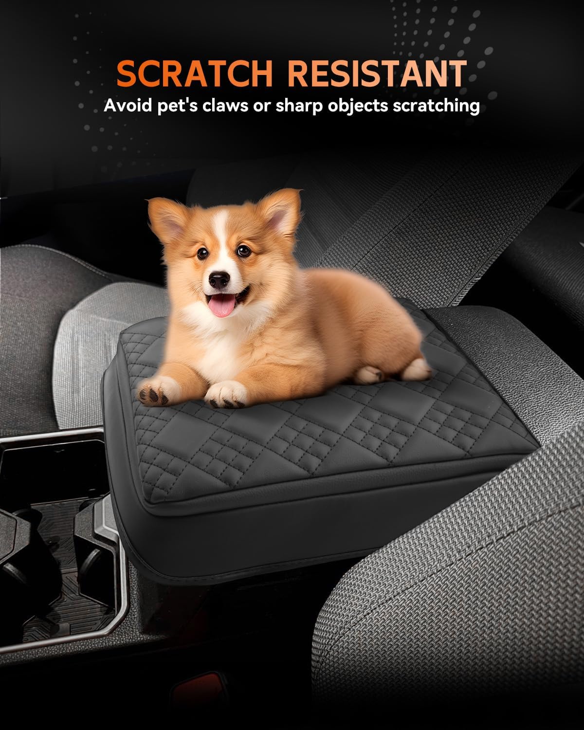 - [Excellent Scratch Resistance] The car Armrest Cover mat is made of high quality PU microfiber leather, thick enough to keep out pet paws, dust and sticky fingers. The surface is waterproof, wear-resistant and durable, breathable, light weight and easy to wipe clean of dirt.