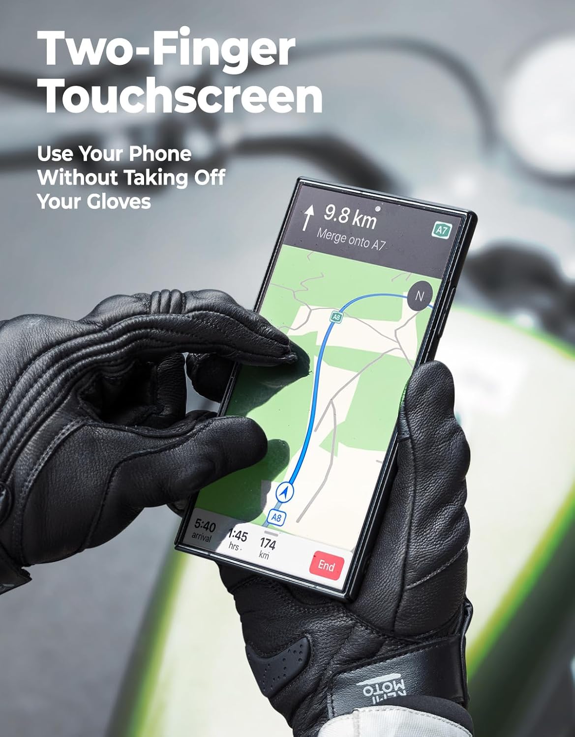 - Stay Connected Without Removing Gloves: The thumb and index finger tips are touchscreen-compatible, allowing you to check your phone, adjust the navigator, or take calls without taking off the gloves. No more fumbling or interrupting your ride