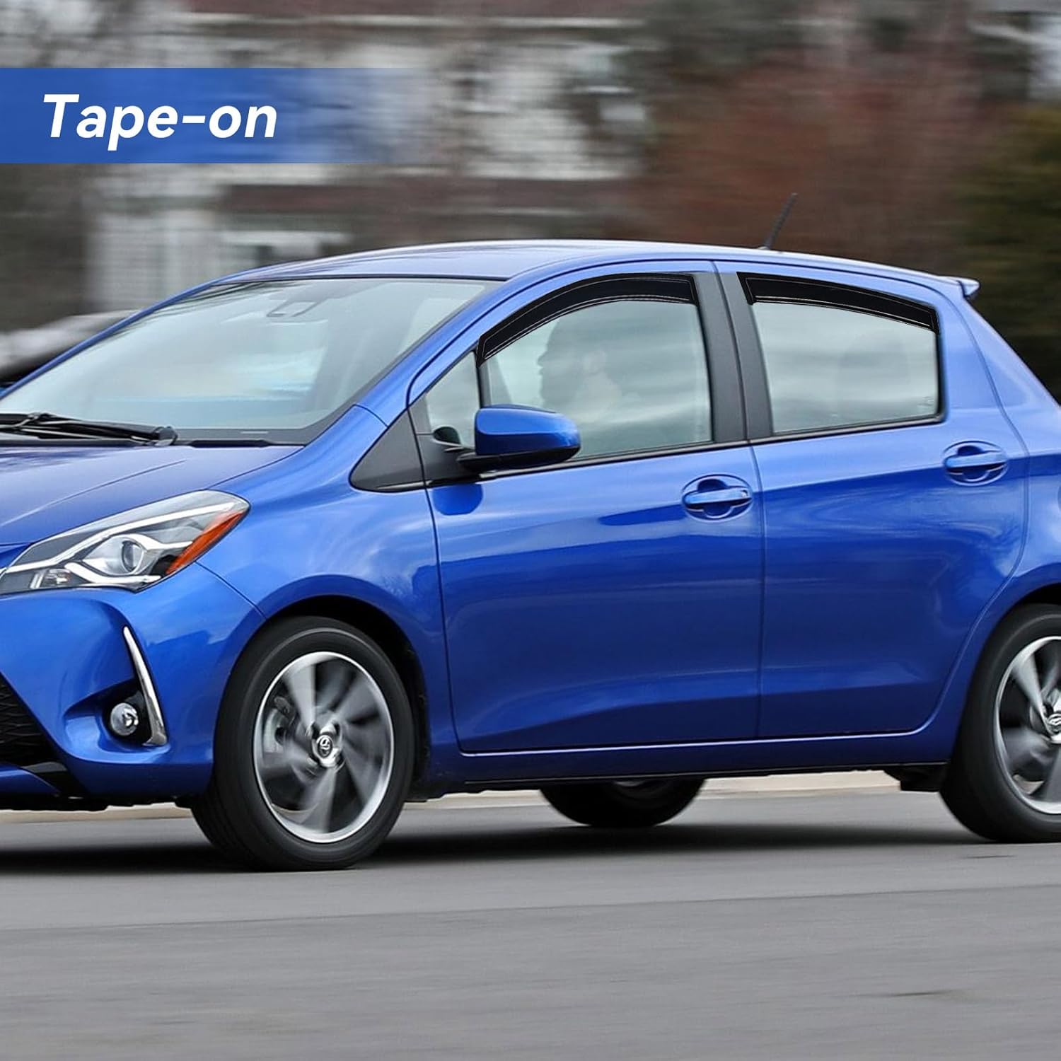 - 【Perfect Fit】YQAUTEC 4Pcs Out-Channel Window Visors Rain Guards Shield fit for 2012 2013 2014 2015 2017 2018 Toyota Yaris Hatchback, Side Window Vent Wind Deflectors Visors Shades for 12 13 14 15 16 17 18 Toyota Yaris Hatchback. (Not for Toyota Yaris iA )
