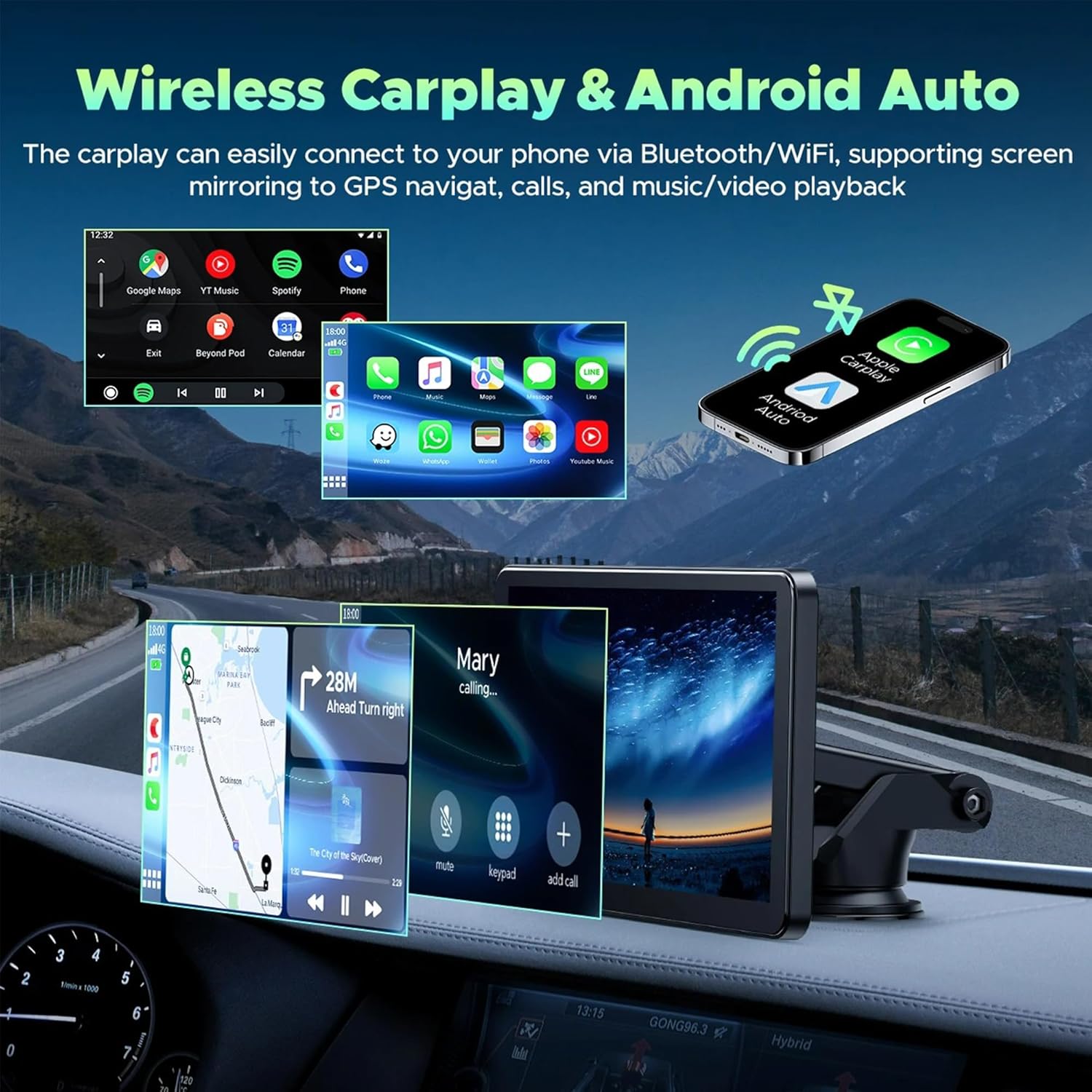 - 【Backup camera for safer parking】: The carplay screen features is equipped with a waterproof, high-definition rearview camera with night vision support. When you're in reverse, the camera automatically displays an image on the carplay screen, , making driving safety and parking easier