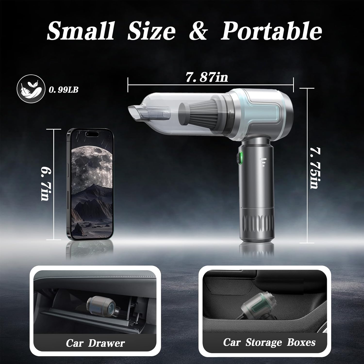 - Type-C Fast Charging & Universal Compatibility :Charges fully in 3 hours via Type-C port, compatible with most smartphone chargers. The compact 7.87"x7.75" (0.99lb) design fits glove compartments. Additionally, the vacuum cleaner for car comes with excellent customer support to ensure timely resolution of any issues, giving you peace of mind with your purchase and continuous, reliable performance wherever you use it.