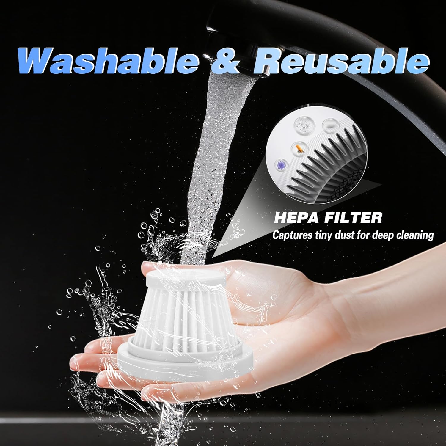 - Washable Filter & Interchangeable Nozzles : The removable washable HEPA filter captures 99.9% of dust particles, ideal for pet owners. This portable car vacuum cleaner comes with 7 interchangeable nozzles: crevice tool for car vents, upholstery brush for seats, dusting brush for dashboards, and universal nozzle for general cleaning.