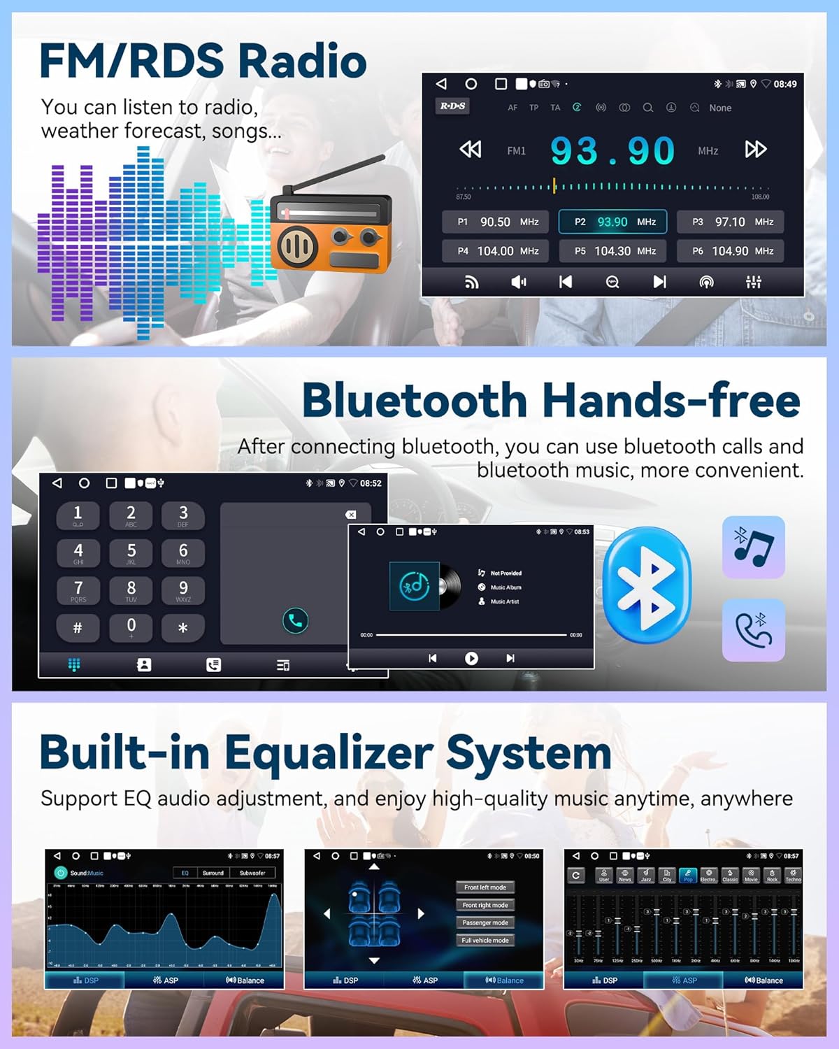 - 【Compatible Car Models: for Subaru Forester WRX Impreza 2015-2018 Upgrade Radio】For Subaru Forester WRX Impreza 2015 2016 2017 2018 radio, Android 13 car stereo 9 Inch HD 2.5D mirror glass capactive touch screen with 2GB RAM, 64GB ROM storage, Quad core, built-in WiFi/GPS receiver, Bluetooth, CarPlay & Android Auto voice control, this 9 inch car stereo supports online and offline function, subwoofer connection, EQ Audio setting etc.. Power output: 4*45W. AHD rear view camera, mic included
