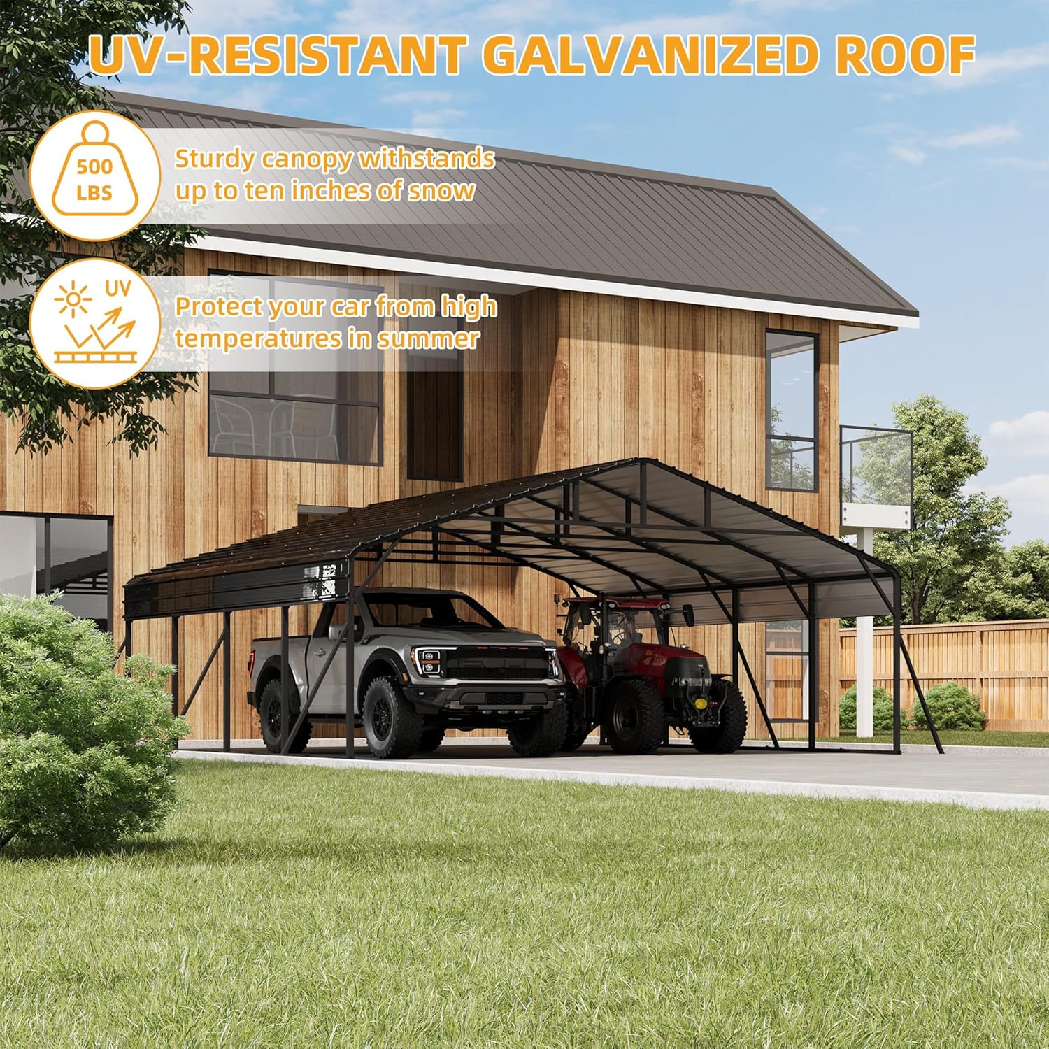 - MULTI-USE METAL CARPORT - The outdoor metal carport with heavy duty galvanized canopy garage car shelter offers ample space for vehicles and trucks. It can serve as a carport canopy and a shelter for outdoor activities like parties, weddings, and trade shows. The gray finish adds an elegant and stylish charm to your backyard. Customize your outdoor life now!