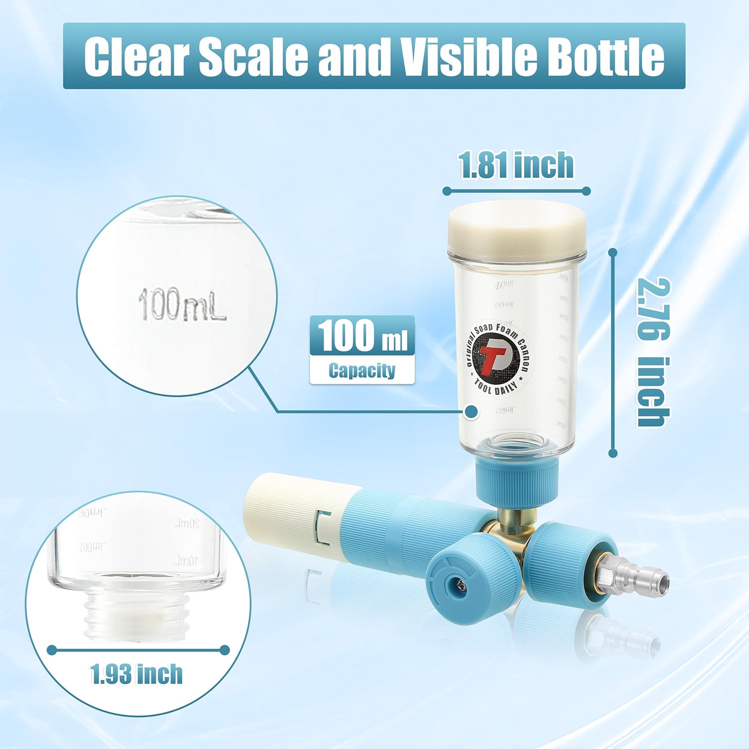 - INNOVATIVE DESIGN: The pressure washer foam cannon is designed for ultimate convenience. Simply add your favorite car wash soap directly into the bottle - no need to dilute it with water. This novel design simplifies the cleaning process, saving you time and effort. Besides, you don’t need to worry about getting the soap concentration just right. The undiluted soap creates thicker, richer foam for a more thorough and effective car wash
