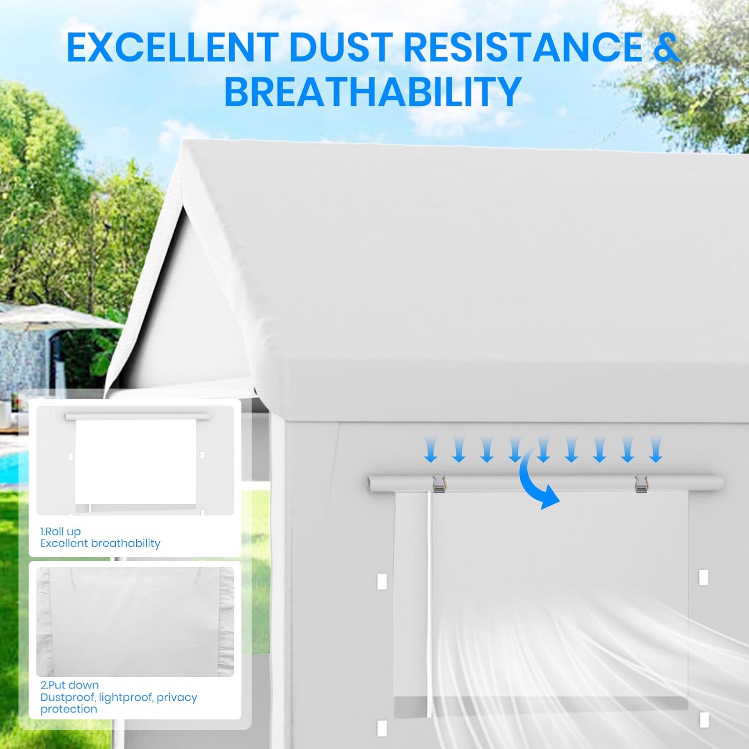 - Heavy Duty & Durable Construction:This 10x20 FT portable garage carport features a robust steel frame and a heavy-duty waterproof canopy, ensuring reliable protection for your vehicles, boats, and RVs. The high-quality materials are designed to withstand harsh weather conditions, including UV rays, rain, and wind.