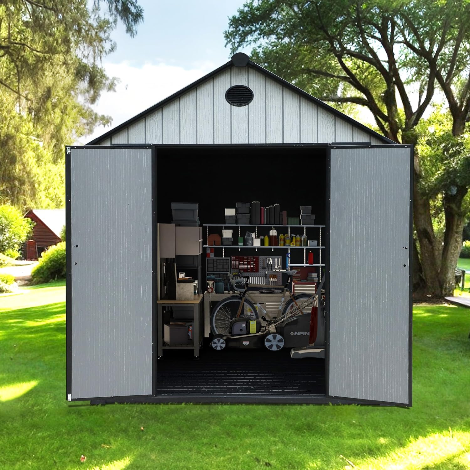 9×7 FT Outdoor Storage Shed, Large Backyard Sheds with Door, All-Weather Plastic Shed with Window, Vents, for Backyard, Patio, Lawn (9×7 FT)