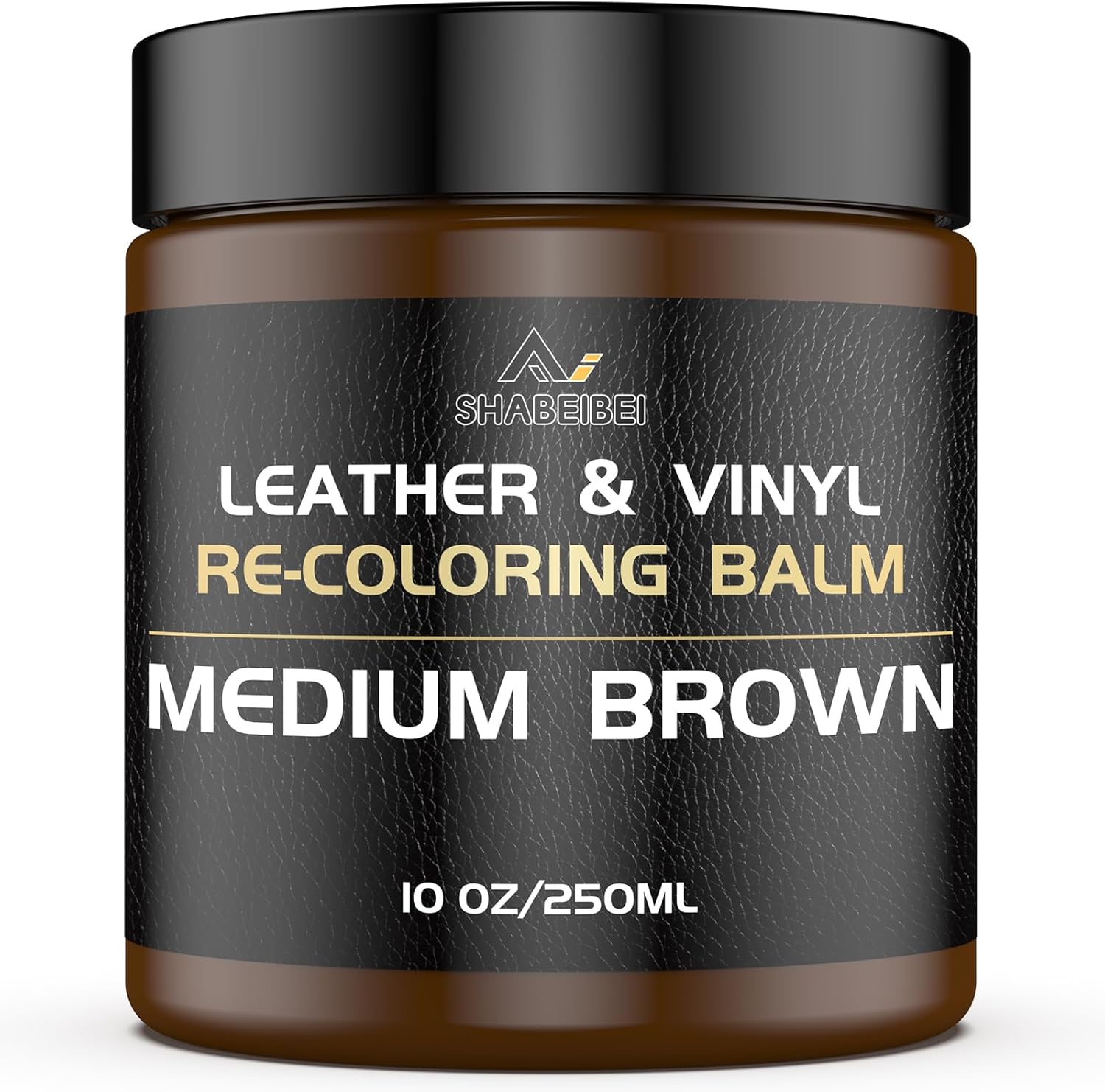 Leather Recoloring Balm,10oz Leather Color Restorer Leather Repair Kit for Furniture Car Leather Scratch Remover, Medium Brown Leather Color Restorer for Couches,Leather Dye Paint for Faded