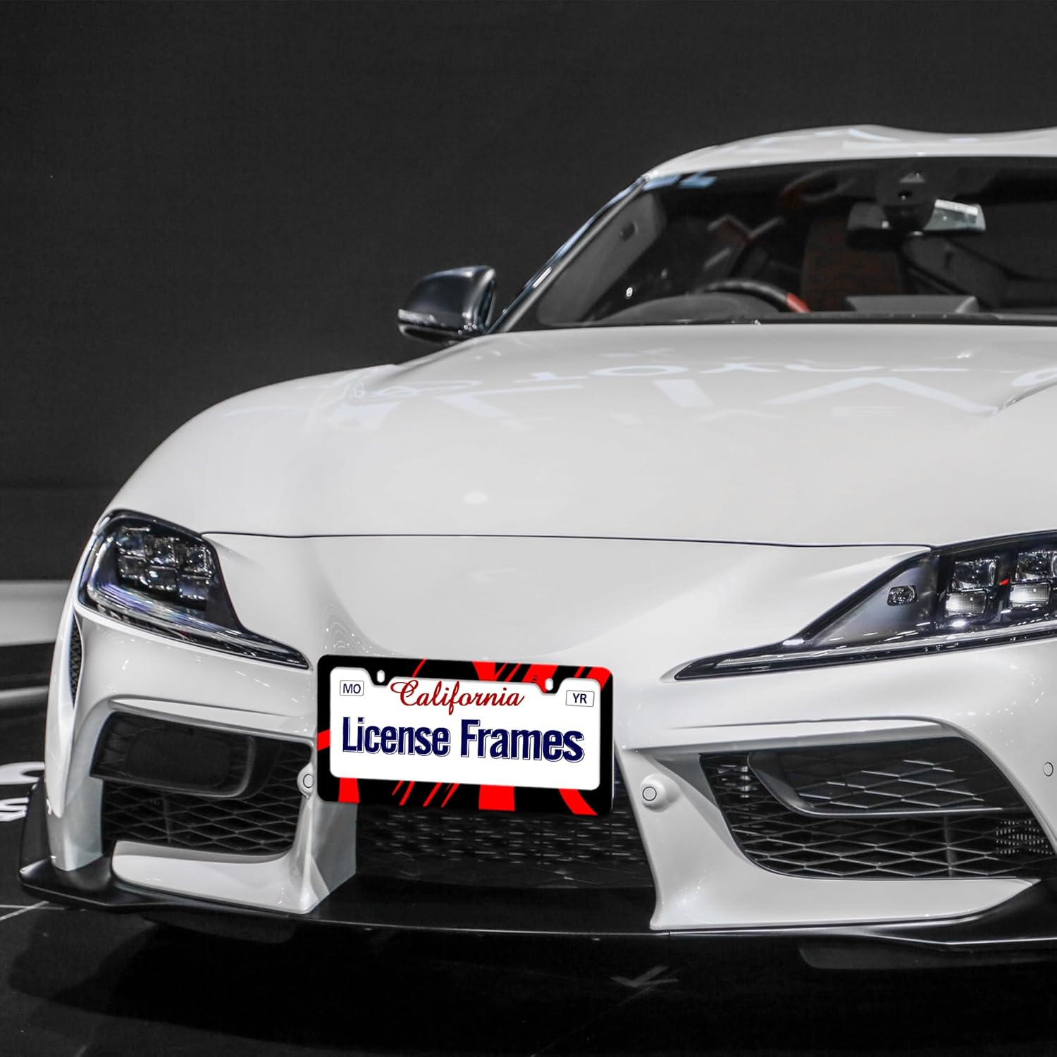 Stainless Steel Red Black License Plate Frame Red Metal License Plate Frame Car Tag Frame Holder Cover Front Rear Car License Plate Covers for Men Women 12.3" X 6.3"
