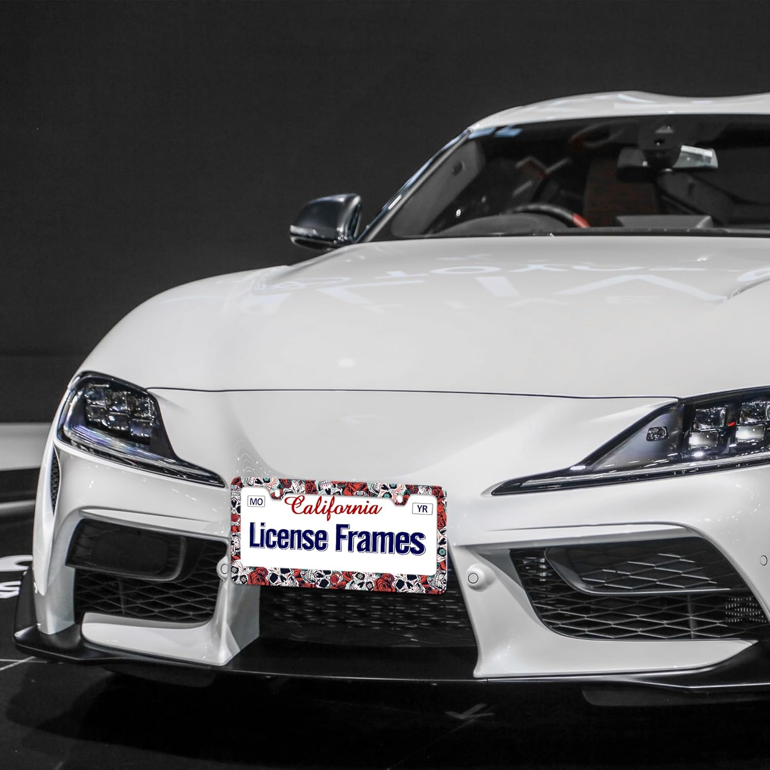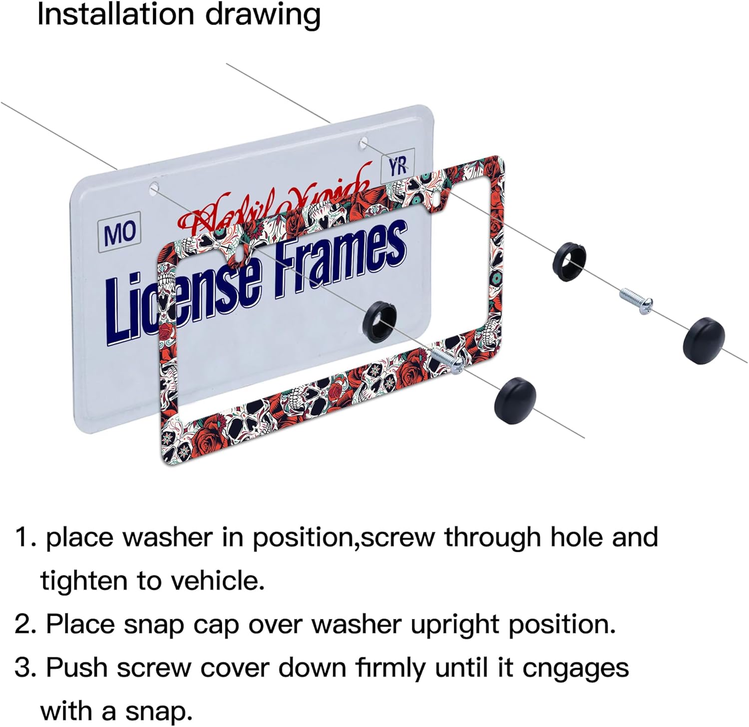 - Sugar Skull License Plate Frame:You will receive a set of 2 license plate frames,All Accessories Needed are Included (4 Screw Caps,4 Screws,4 Washers),Quick and Simple Installation,you don’t need to buy any other hardware or fasteners,Anti-theft caps are also included.