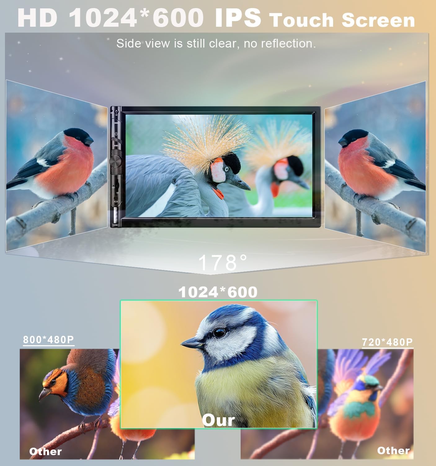 7 Inch Car Stereo with Wireless Apple CarPlay,Double Din Car Radio Androdi Auto,Bluetooth 5.2,IPS 1024 * 600 Display,FM Radio, Backup Camera,Online Navigation,178 * 100mm,Car Audio Receivers