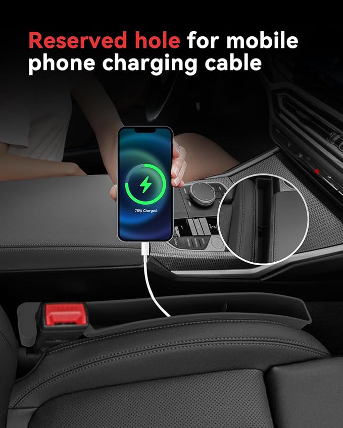 - Multi-functional use: In addition to holding things that fall into the seat crevice, seat gap storage box also serves as storage and has a hole at the bottom for charging your mobile phone with a data cable