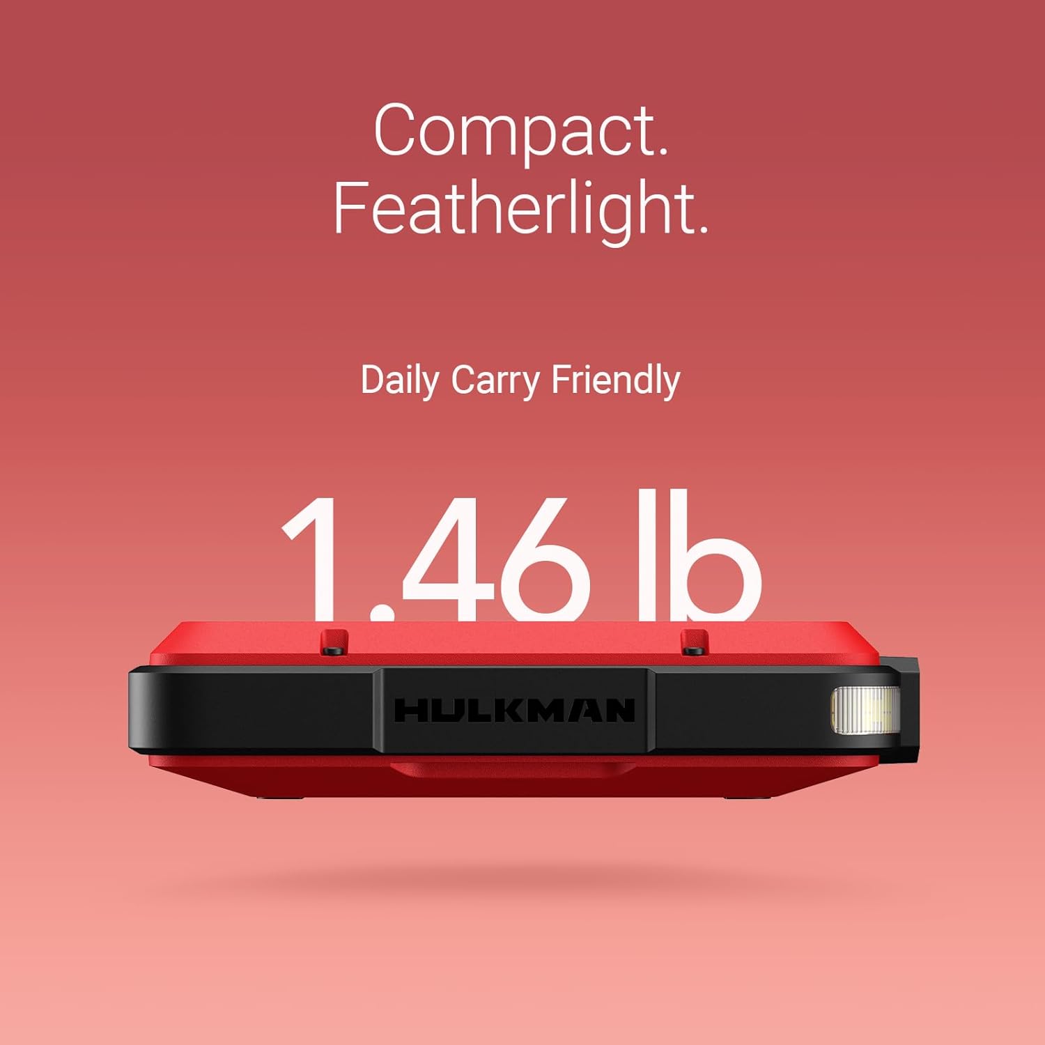Hulkman Alpha, Ultra Red, 1000A 37Wh Battery Jumper Starter Portable, 12V Modern Car Jump Box with Jumper Cables, for 6.5L Gas/3.0L Diesel Engines, 65W Fast Charging, IP65 Rated, Large LED Display