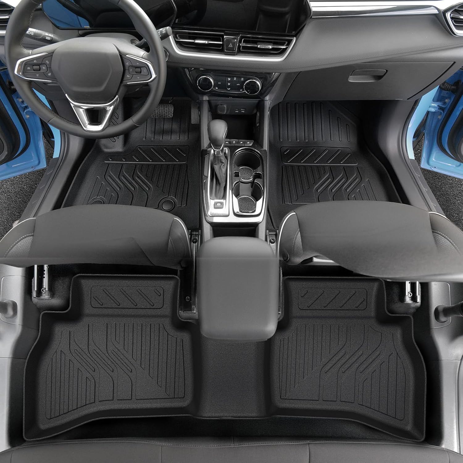 - Custom Fitment: Precisely designed with 3D laser scanning technology for 2021-2026 Chevy Trailblazer AWD. Includes 1st & 2nd row floor mats, 2-in-1 cargo liner with seat back protectors, 2PCS storage mats and 4PCS door sill guards โ 40% more components than standard sets
