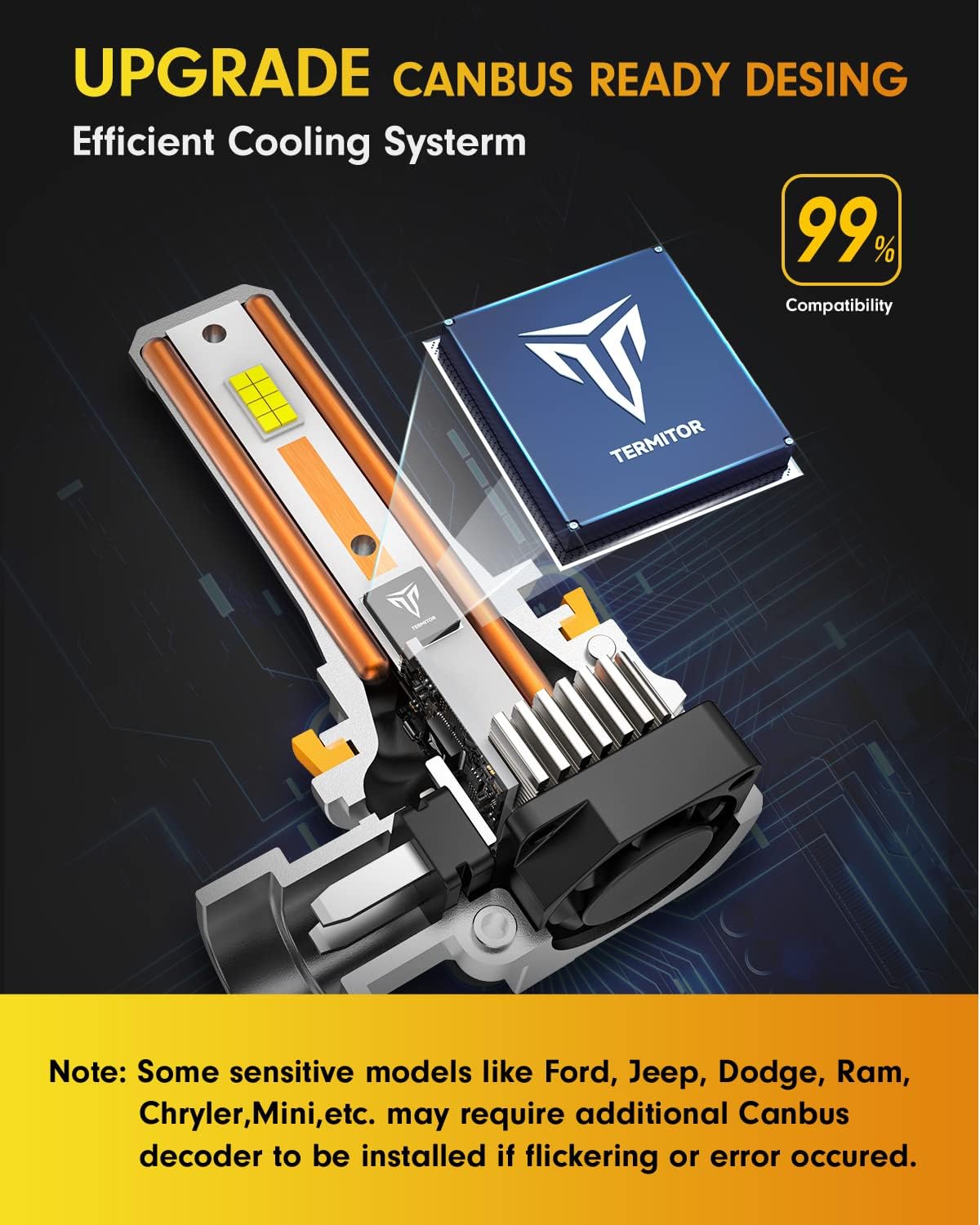- 【Universal Fit for Most Vehicles】The H11 9005 features next-generation smart decoding technology and an upgraded IC driver system, ensuring seamless compatibility with over 99% of modern vehicles. These bus-ready bulbs automatically prevent error messages, flickering issues, and electromagnetic interference. Some sensitive vehicle models may require an additional bus decoder. Our technical support team is always available to assist with compatibility questions.