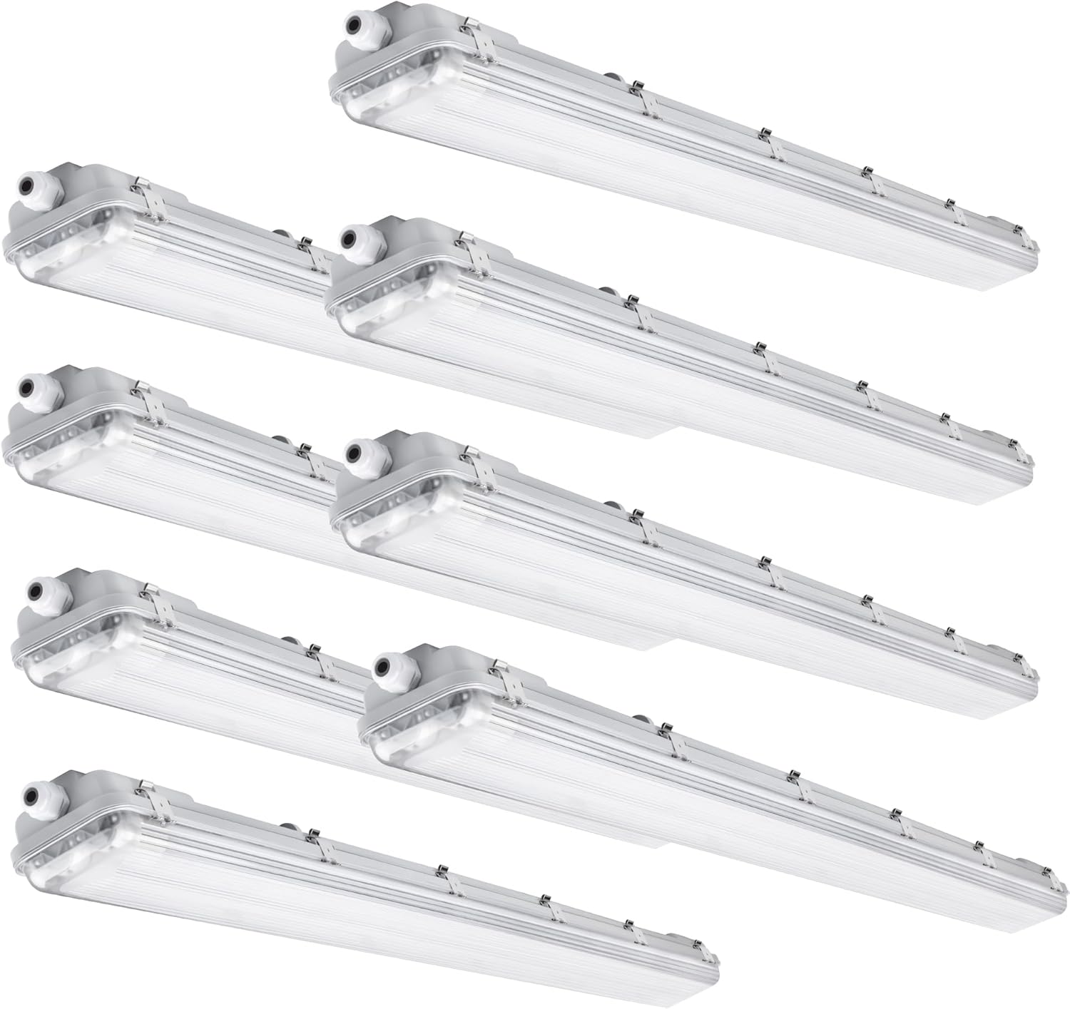 4FT Vapor Tight LED Light Fixture 4200LM 48W, 6500K Bright White IP65 Waterproof for Warehosue, Factory, Workshop, Garage, Car Wash,Indoor/Outdoor Ceiling Lights (8-Pack)