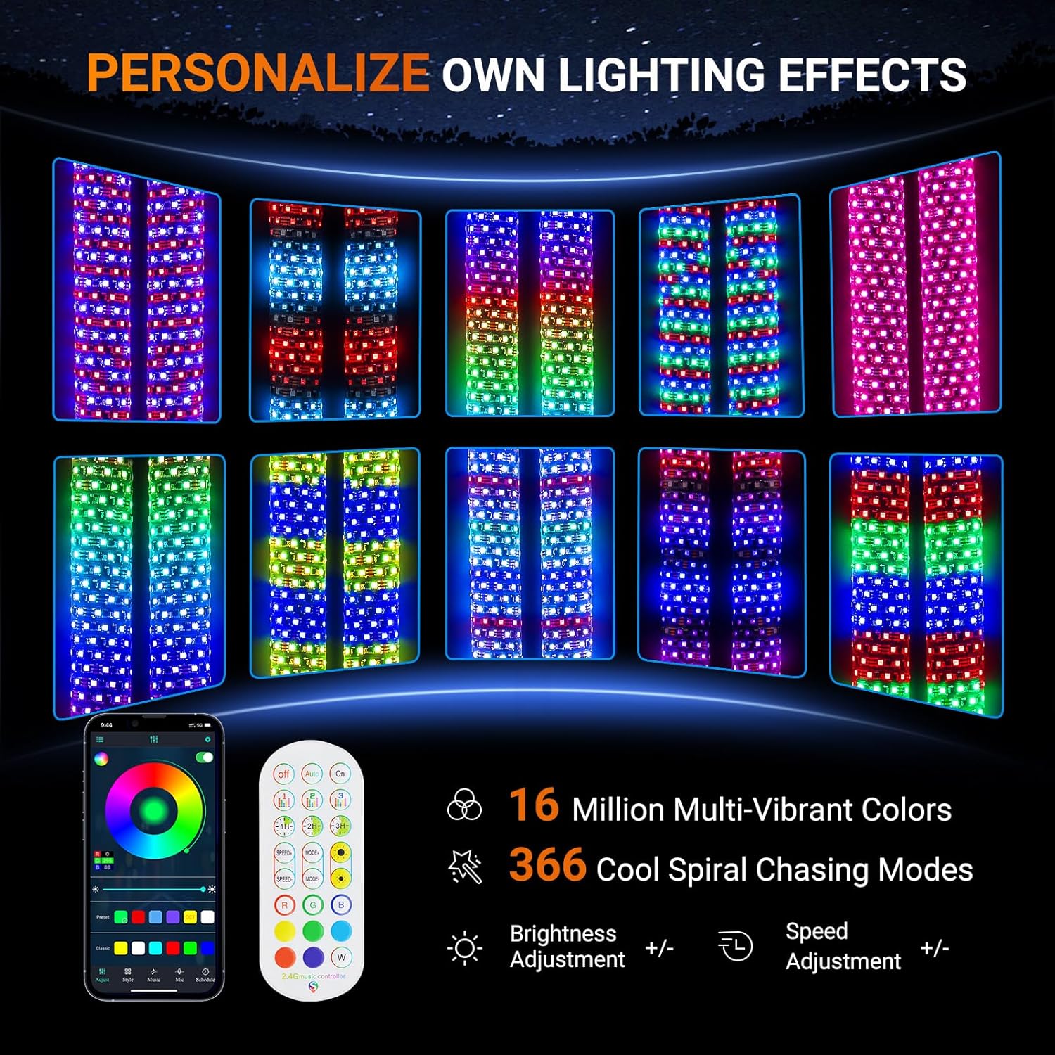 - Special Feature : APP Control, Customizable Flash Patterns, Customizable Music Modes, Multi-Color, Rust Proof