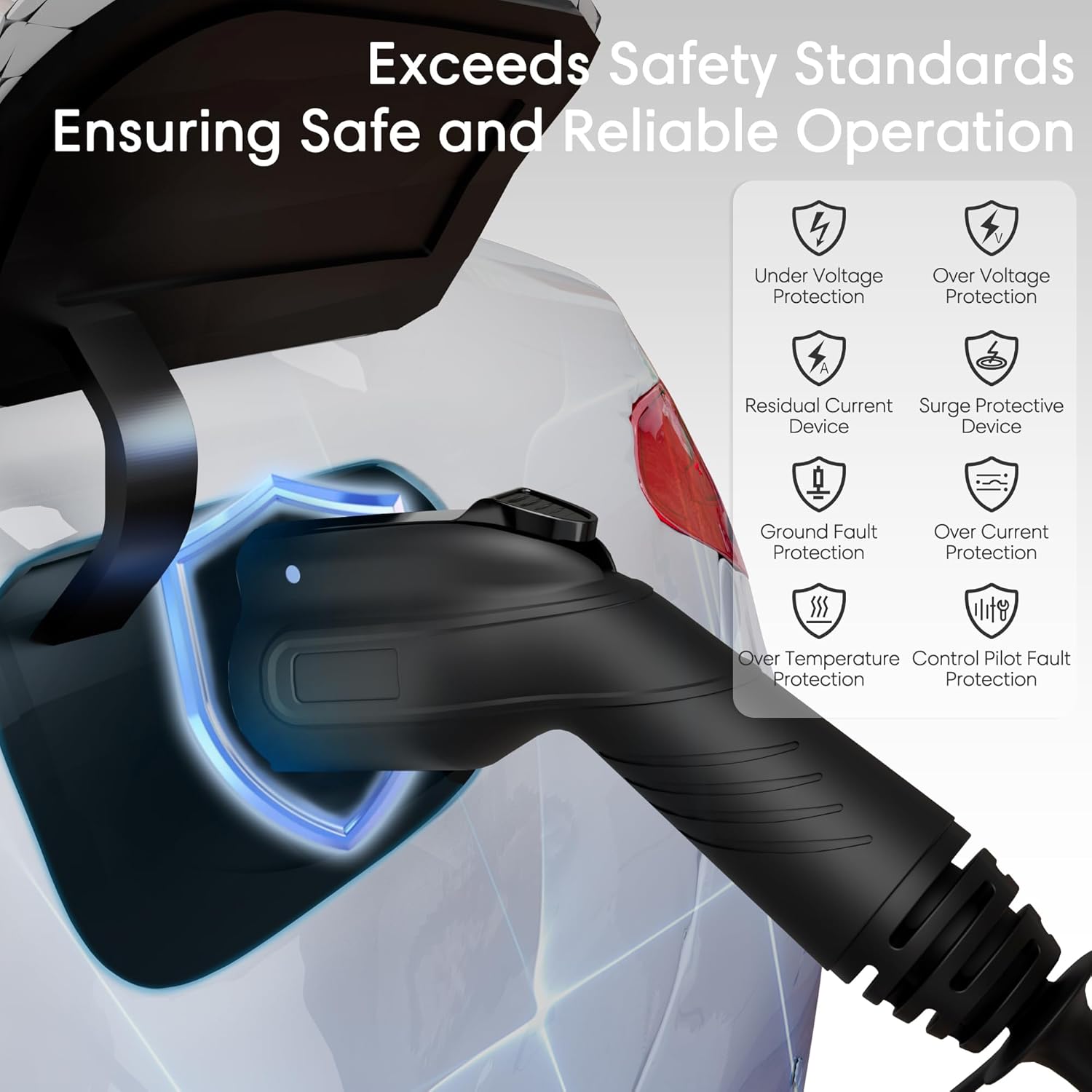 - 【All-Round Protection】: Equipped with multiple safety features, including overvoltage protection, overload protection, short circuit protection, ground protection, and earth leakage protection, this level 2 EV charger ensures your safety at every turn. It operates seamlessly in temperatures ranging from -22°F to 122°F and boasts a connector lifespan of up to 10,000 uses. With an IP65 TYPE 4 waterproof case and a robust 25ft cable, it's perfect for both indoor and outdoor applications.