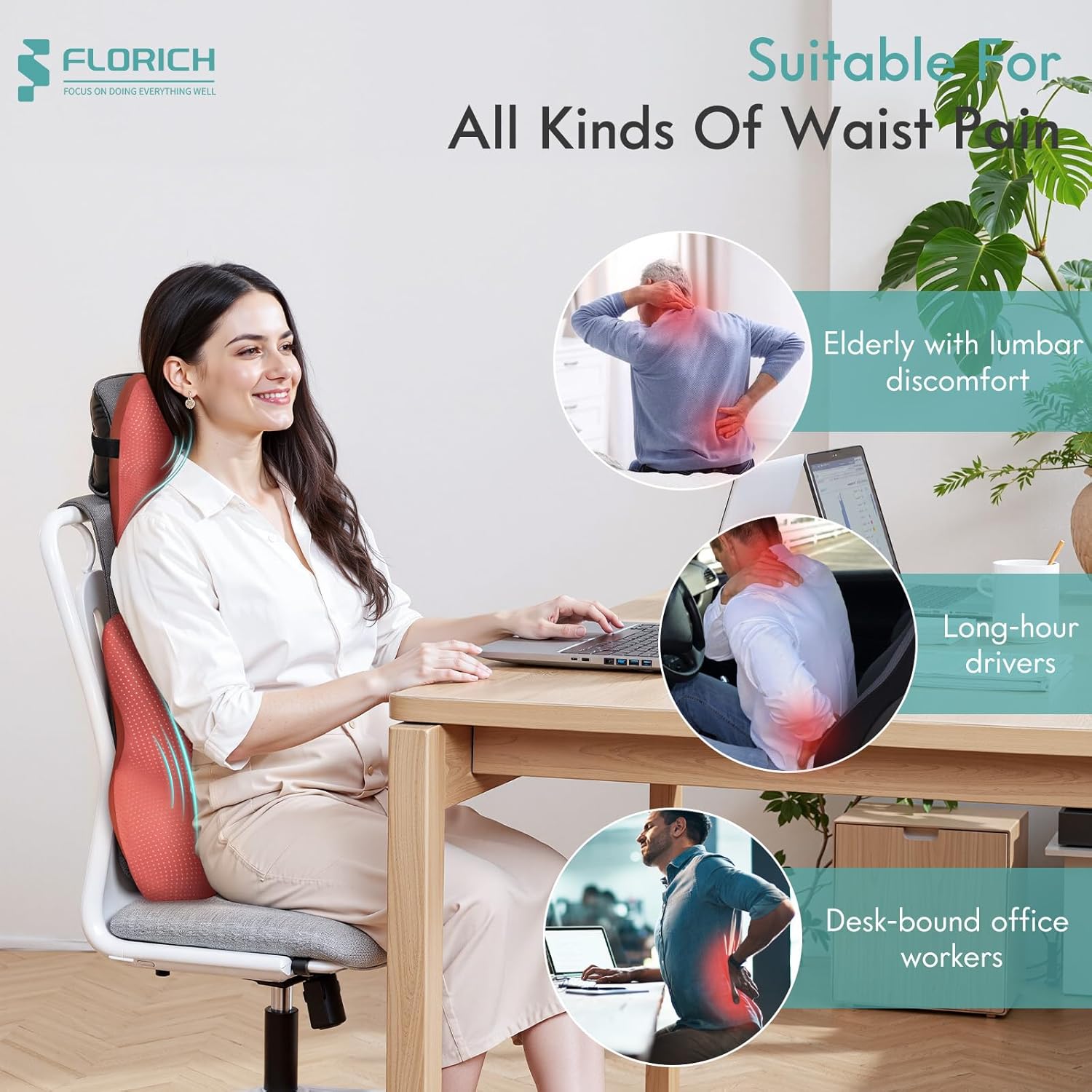 - Enjoy Comfort in Multiple Scenarios: Florich lumbar support pillow and neck headrest pillow set makes for a memorable and healthy gift for Christmas, New Year's, Mother's Day, Father's Day, Valentine's Day, birthdays, weddings, and graduations. Suitable for people of all ages and lifestyles, it is not only ideal for office chairs, home chairs, car seats, gaming chairs, airplane seats, wheelchairs, etc., but also for office workers, drivers, teachers, students, and those who enjoy reading and gaming.