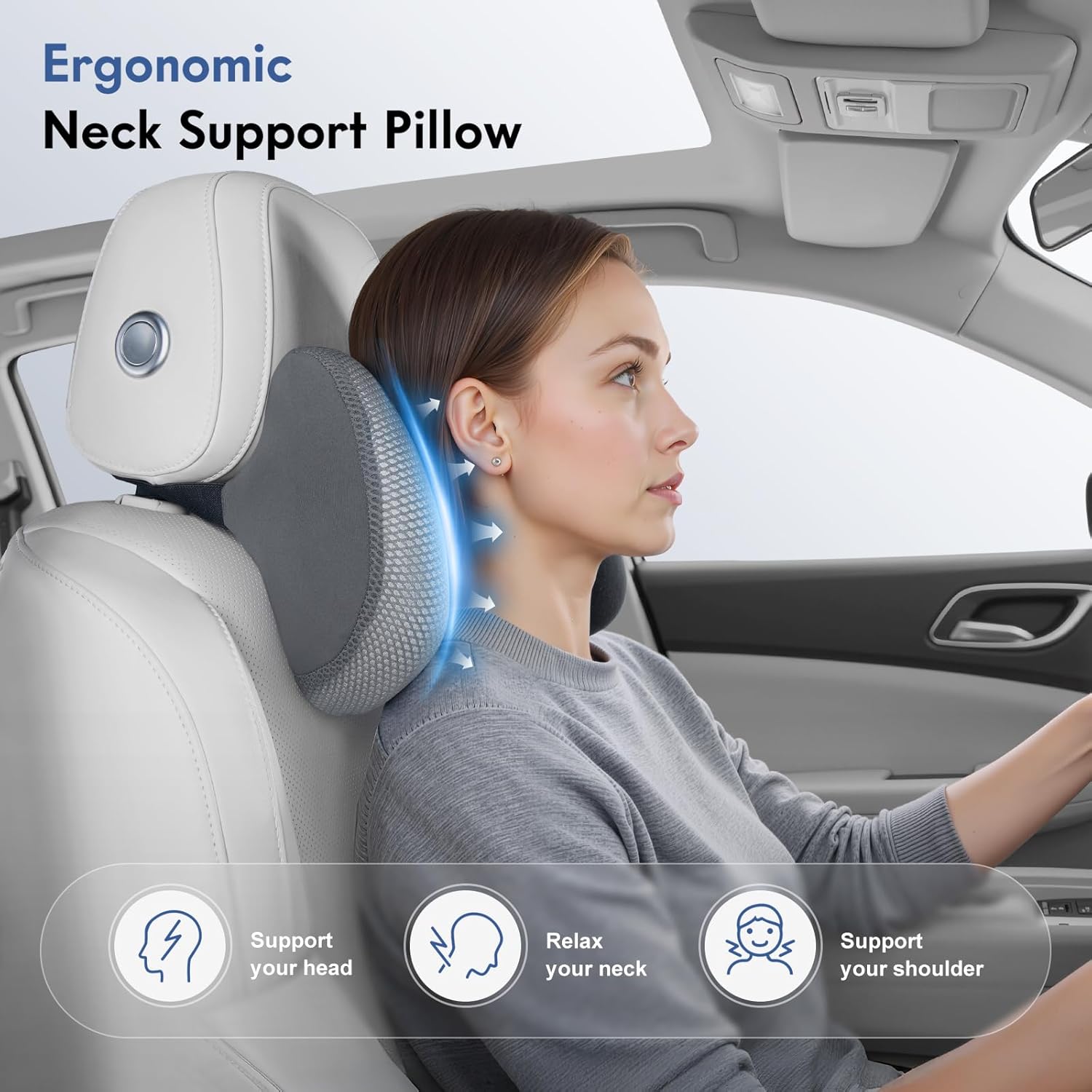 - Dedicated Car Neck Pillow:The neck pillow features an ergonomic concave design, combined with memory foam, it effectively wraps the neck and provides comfortable three-point support for the head, neck, and shoulders. The headrest pillow scientifically guides your body to maintain the correct posture and reduces neck strain. The adjustable shoulder strap design fits all car seats and can be easily adjusted to the appropriate height.