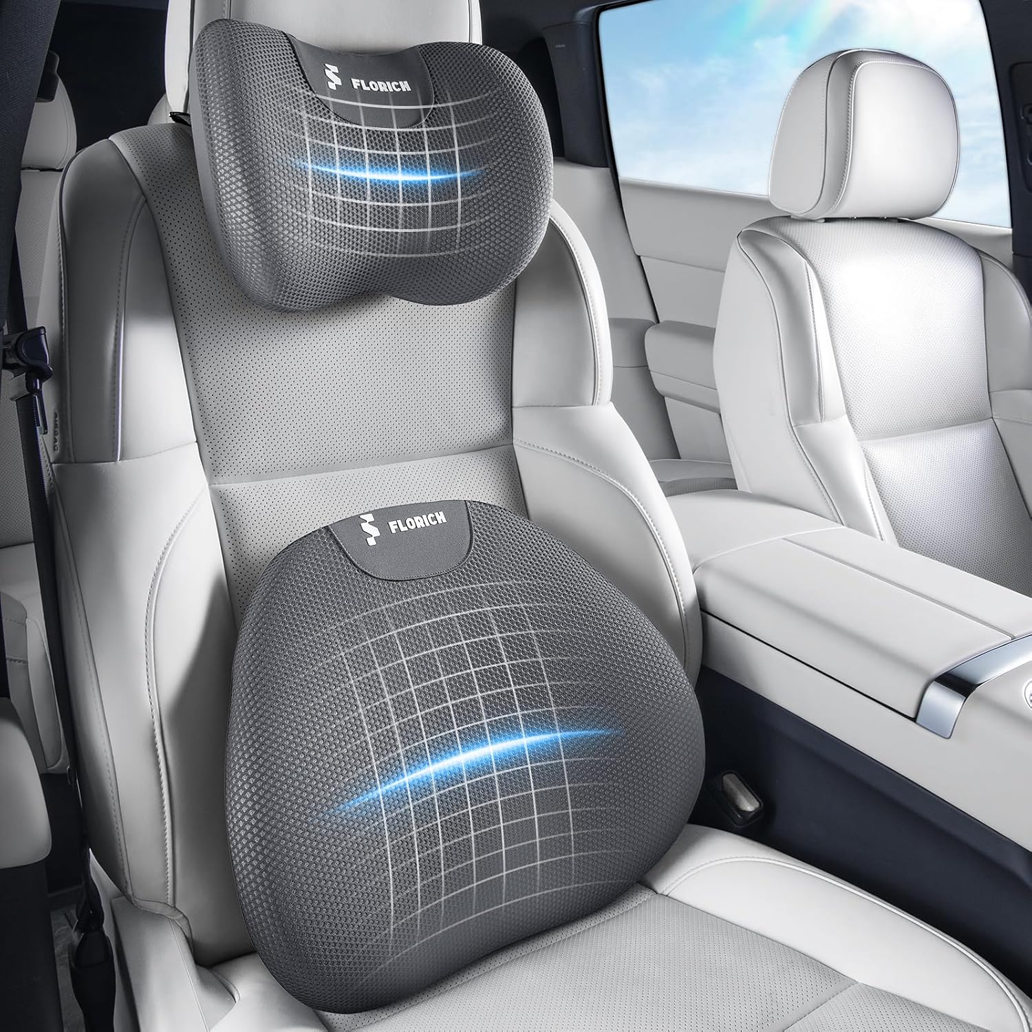 FLORICH Lumbar Support Pillow and Neck Pillow for Office Chair Car, Ergonomic Memory Foam Back Support for Office Gaming Chair Driving Seat Wheelchair, Relieves Neck, Back & Sciatica Pain – Grey