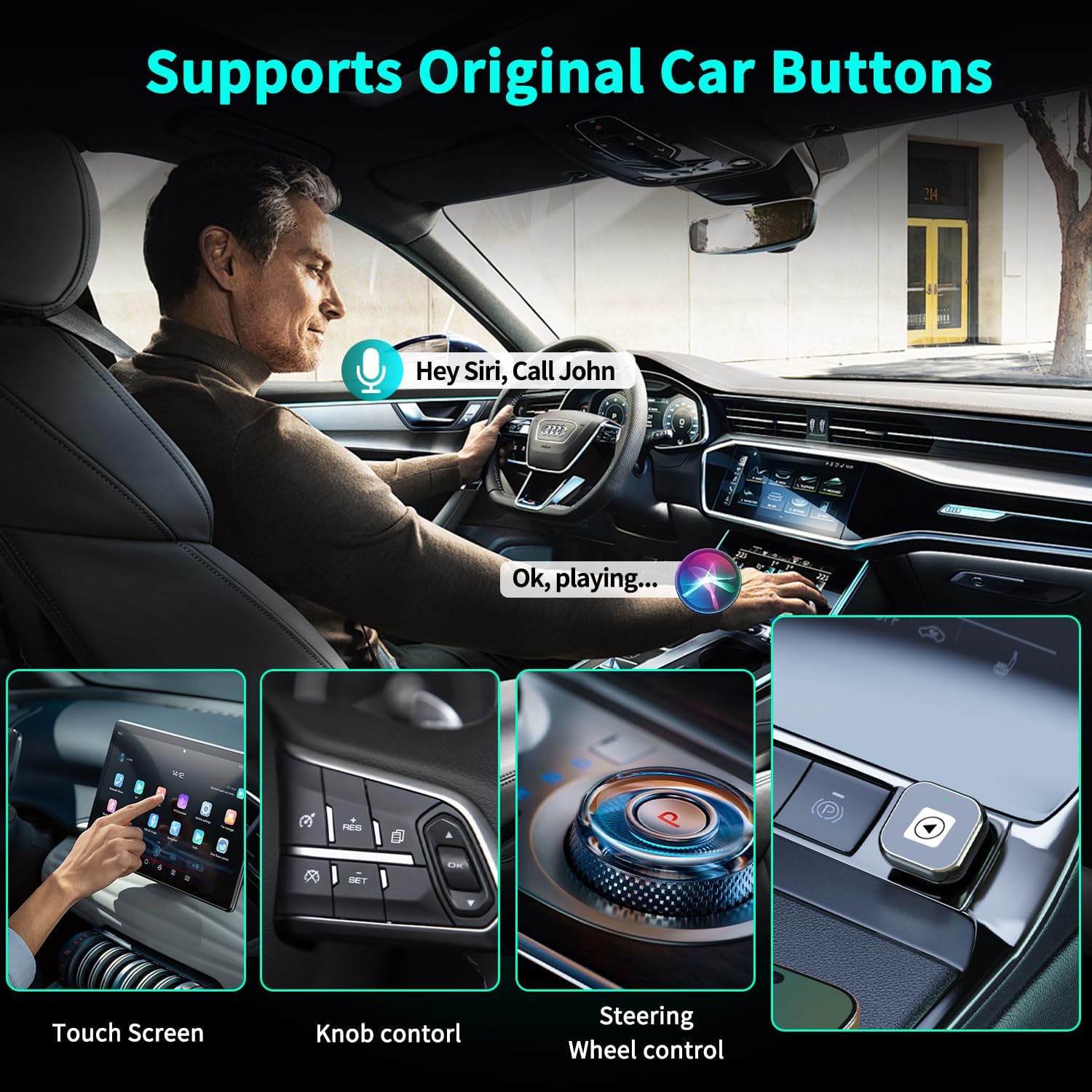 - **Lag-Free & Smart Convenient Features** – Advanced chipset reduces latency (under 0.5s delay for music/maps),5GHz WiFi ensures HD audio (no static or dropouts during calls),even on bumpy roads,the Wireless CarPlay stable connection,Supports Siri voice control for hands-free calls, messages and navigation