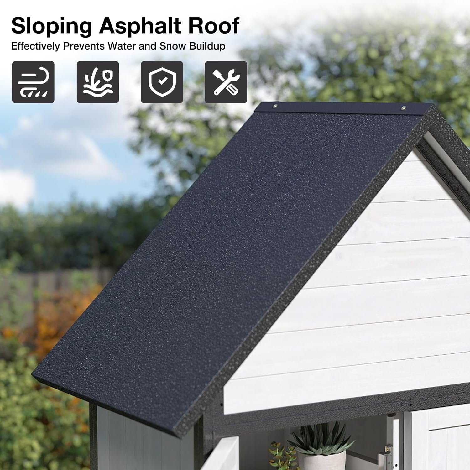 - Weatherproof & Elevated Design – The garden storage tool shed features a sloped roof to prevents rainwater pooling and raised fir floor blocks moisture, keeping tools dry in any season.