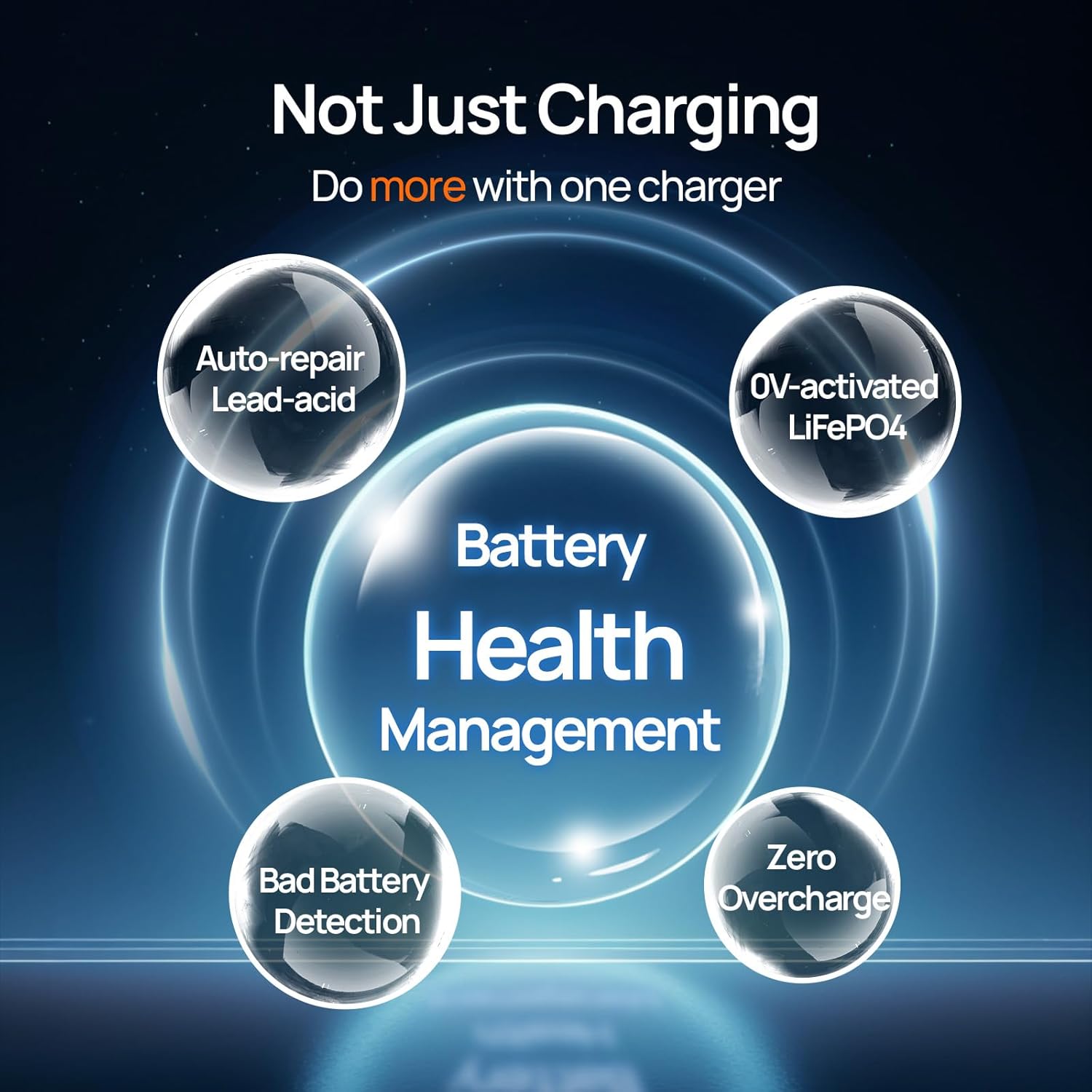 - Battery Rescue Technology: Extends battery life by automatically repairing sulfated lead-acid batteries and safely reactivating deeply discharged lithium batteries. Features intelligent bad battery detection and auto-power off protection