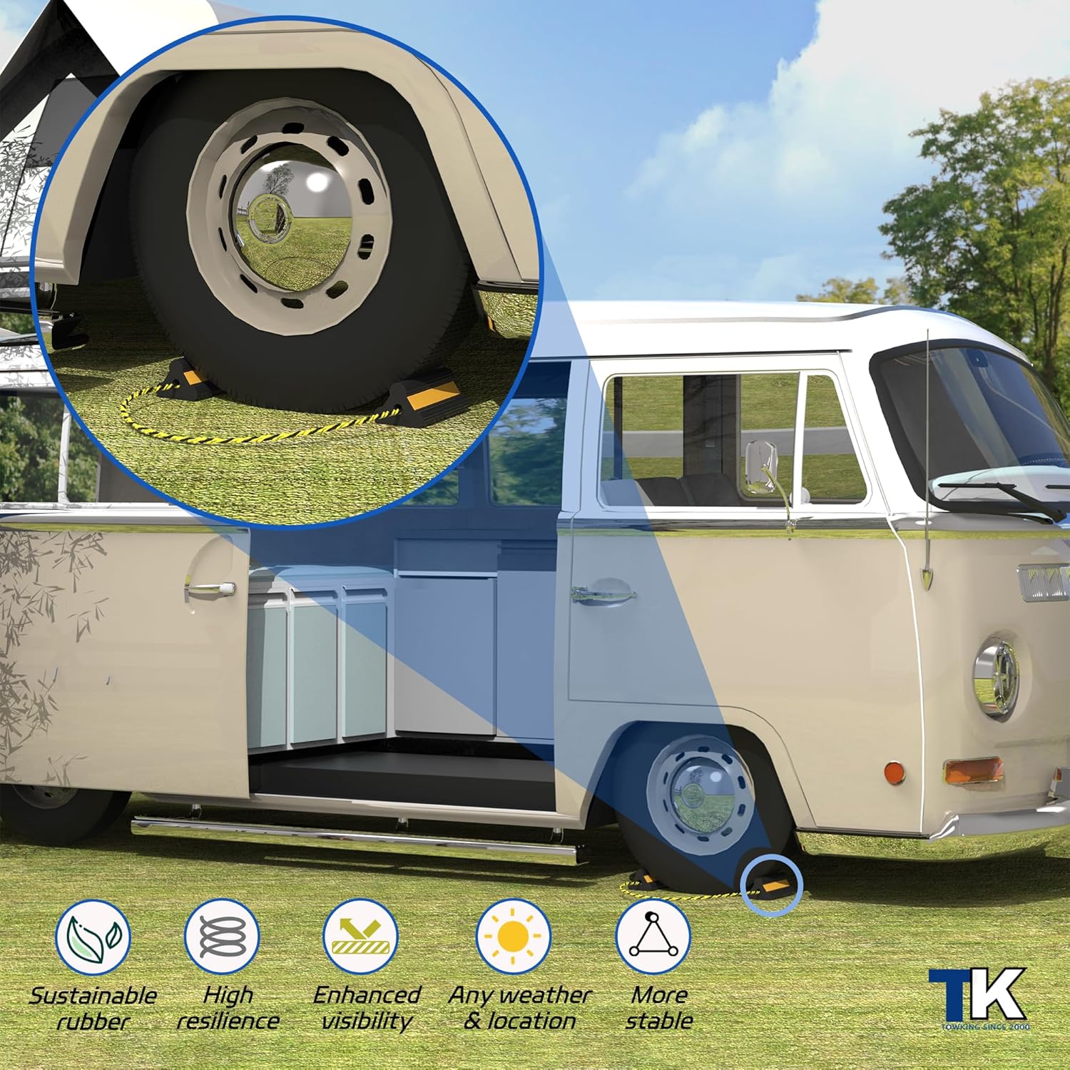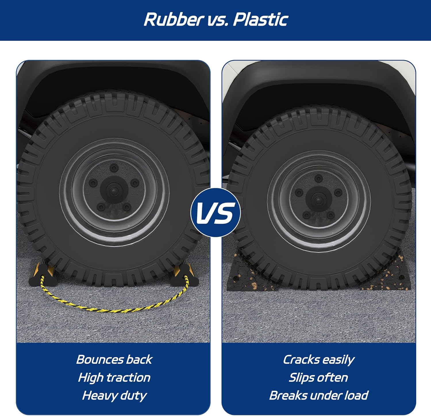 Heavy Duty Rubber Wheel Chock, Non-Slip Tire Stopper with Durable Nylon Rope, for Cars, Trucks, RVs, and Aircraft, 1 Pair