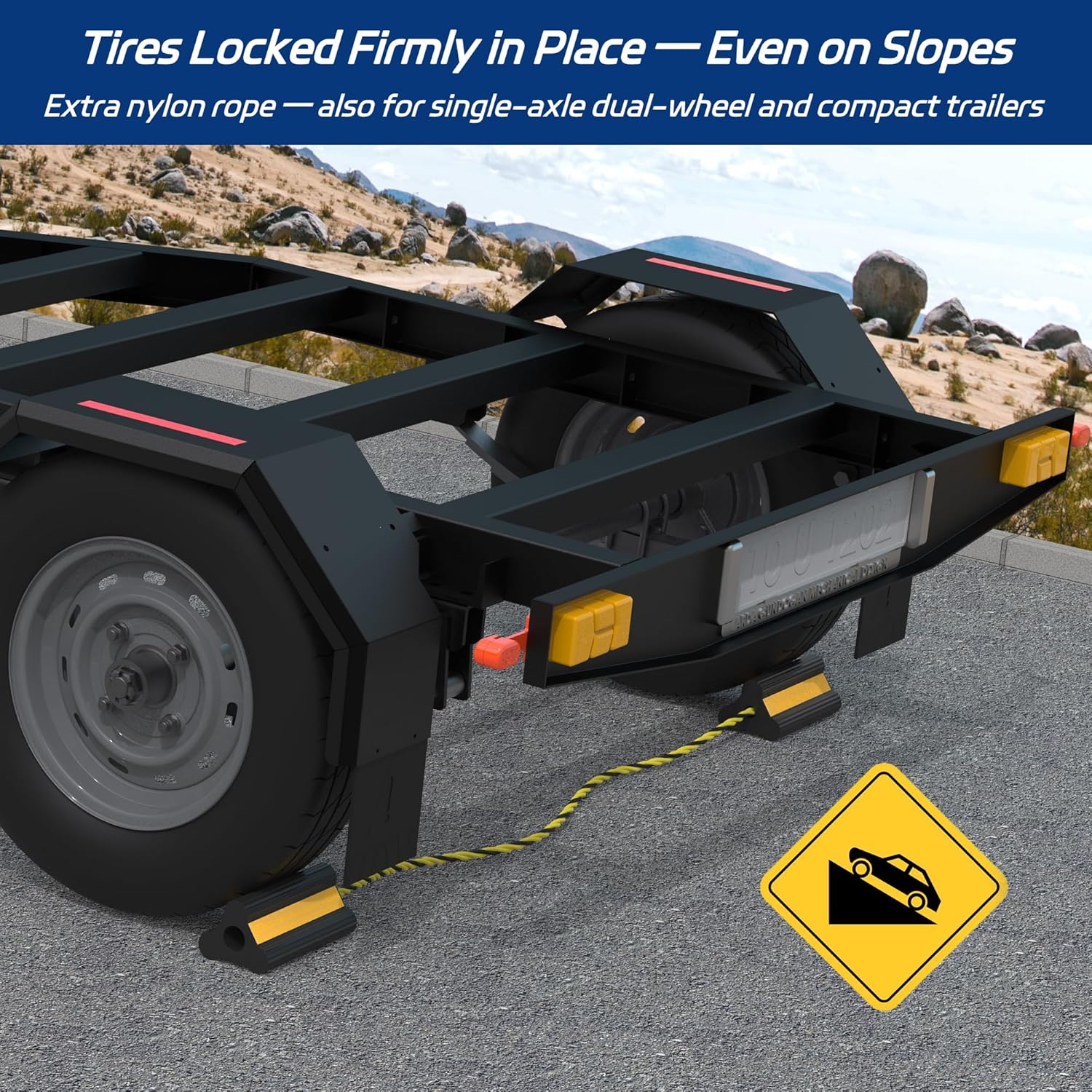 Heavy Duty Rubber Wheel Chock, Non-Slip Tire Stopper with Durable Nylon Rope, for Cars, Trucks, RVs, and Aircraft, 2 Pairs