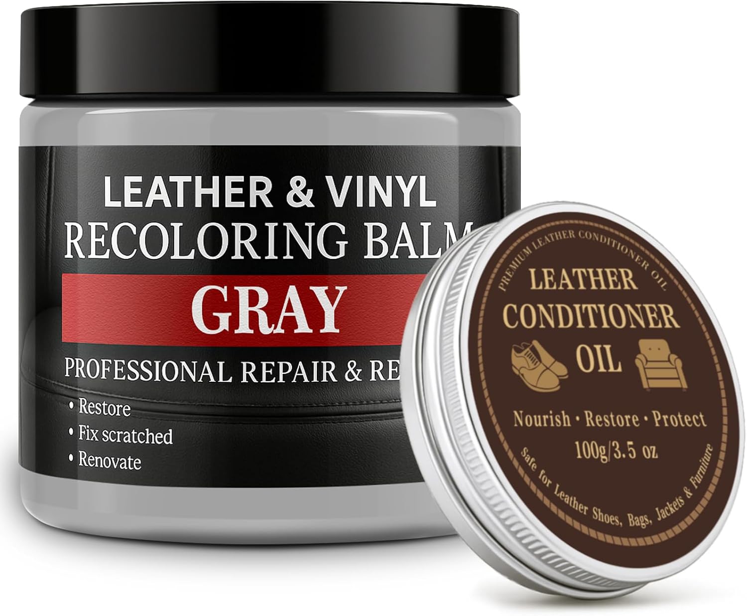 Leather Color Restorer, Leather Recoloring Balm, Scratch Remover, Leather Dye, Leather Paint with Leather Conditioner, Leather Repair Kit for Furniture Couches Car Seats Shoes, Gray