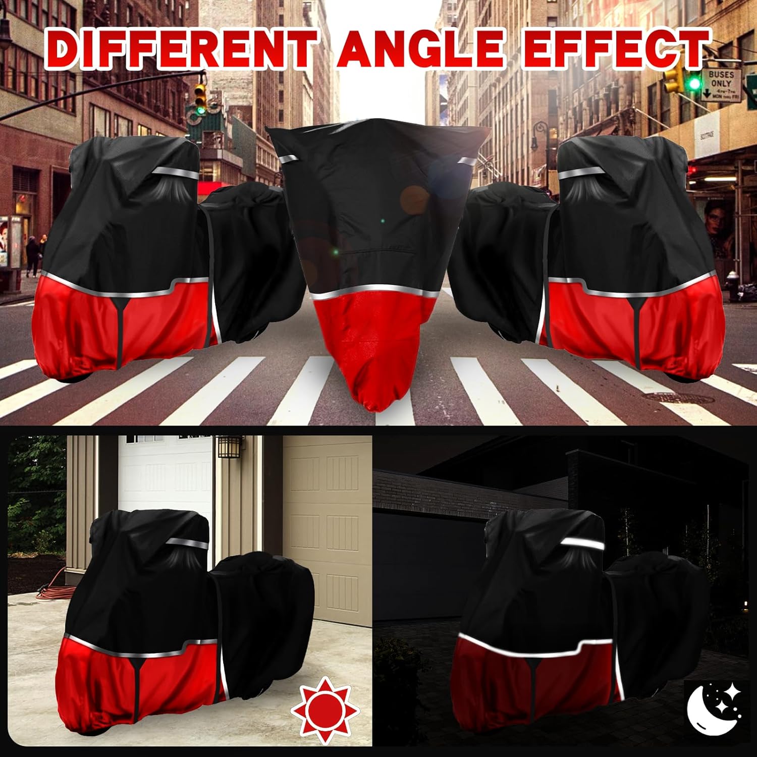 420D Trike Motorcycle Cover Suitable for freewheeler, Tri Glide, and CVO Version All Weather Protection Waterproof Motorcycle Cover Easy to Clean Tear-Resistant Suitable for Outdoor Protection