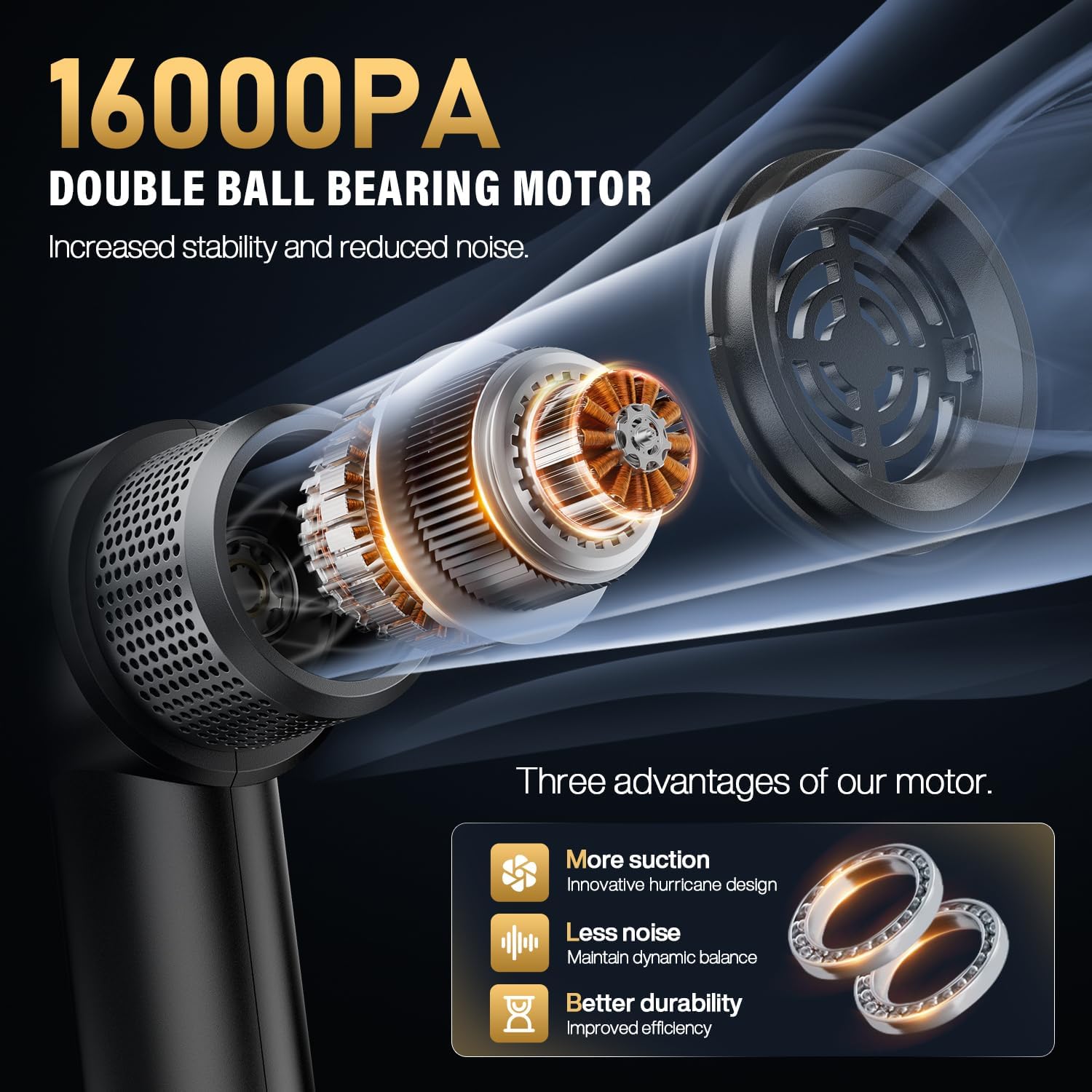- 【Uncompromising 16000Pa Suction Power】Engineered for stubborn debris, this vacuum delivers a robust 16000Pa suction force—to handle everything from cereal spills to embedded dirt in upholstery. The fixed 16,000Pa suction setting eliminates guesswork, providing consistent power to capture fine dust, coarse sand, pet dander, and even small screws or nails. Its cyclonic action prevents clogging, maintaining peak performance during extended use. Tested on hardwood, tile, and low-pile carpets, it leaves no residue behind