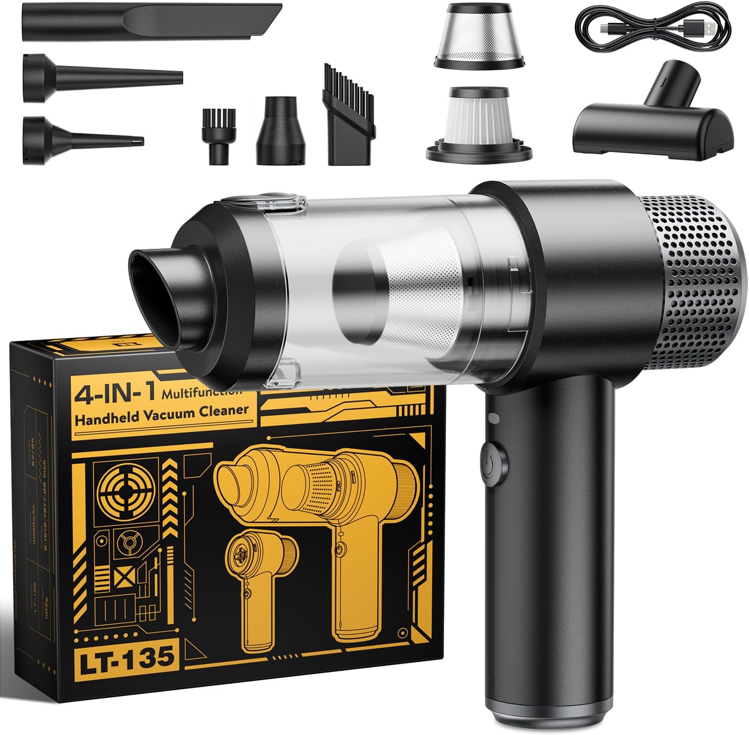 - 【4in1&Versatile Cleaning Companion for Every Scenario】Transform your cleaning routine with this multi-functional handheld vacuum designed to tackle diverse tasks effortlessly. Beyond standard debris pickup, its innovative design allows you to blow away dust from keyboards, shelves, and tight corners, or even inflate balloons, airbeds, and pool toys in seconds. Perfect for indoor and outdoor use, it transitions seamlessly from vacuuming pet hair on carpets to clearing workshop sawdust or refreshing your car’s interior. Its optimized airflow system ensures efficient performance across all functions without manual adjustments