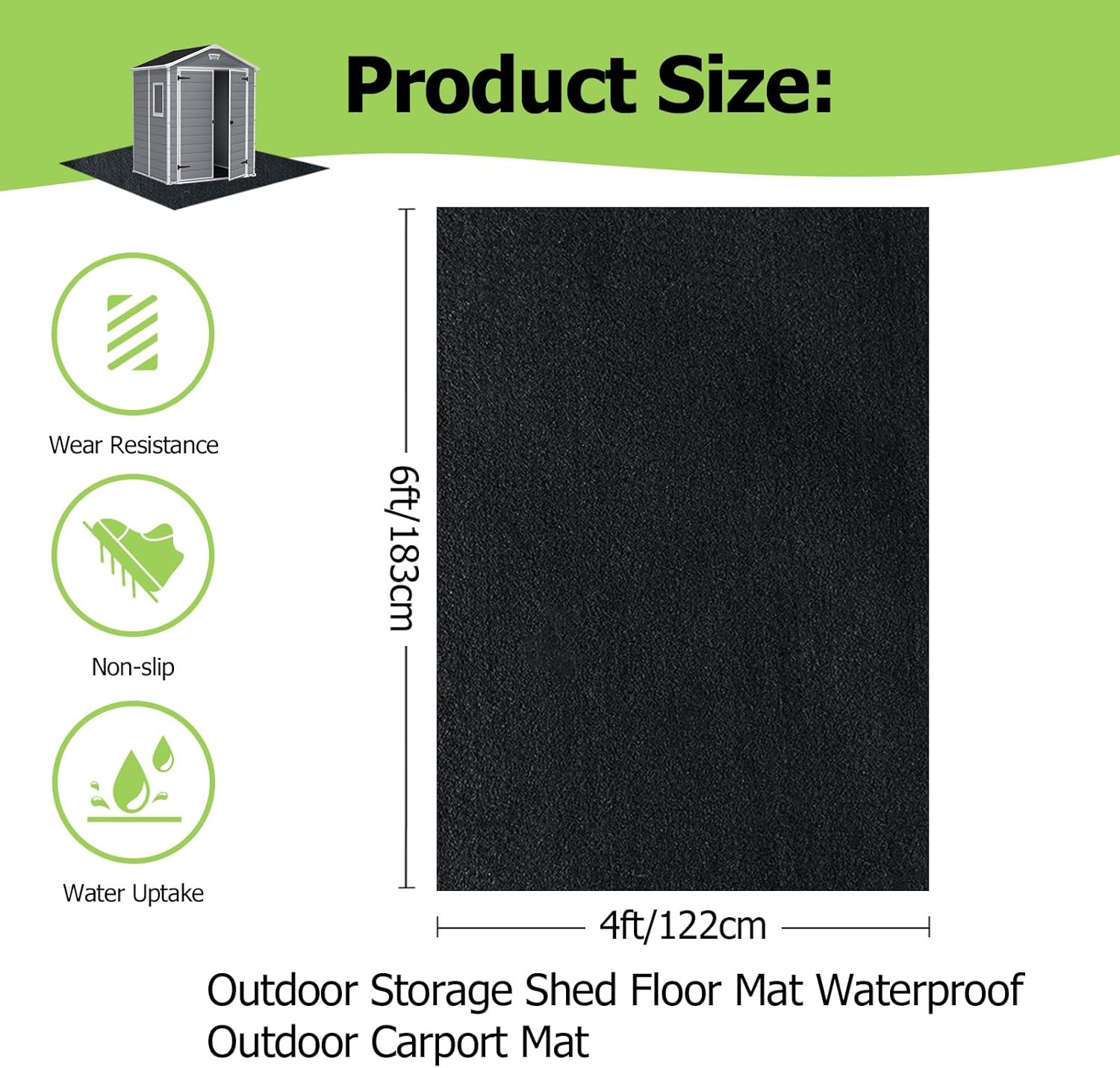 Outdoor Storage Shed Floor Mat, 6 * 4FT Waterproof Washable Garden Flooring Pad with Non Slip Backing, Soft Furniture Patio Covering Carport dust Oil Mat-Tool Shed, Storage Shed Not Included