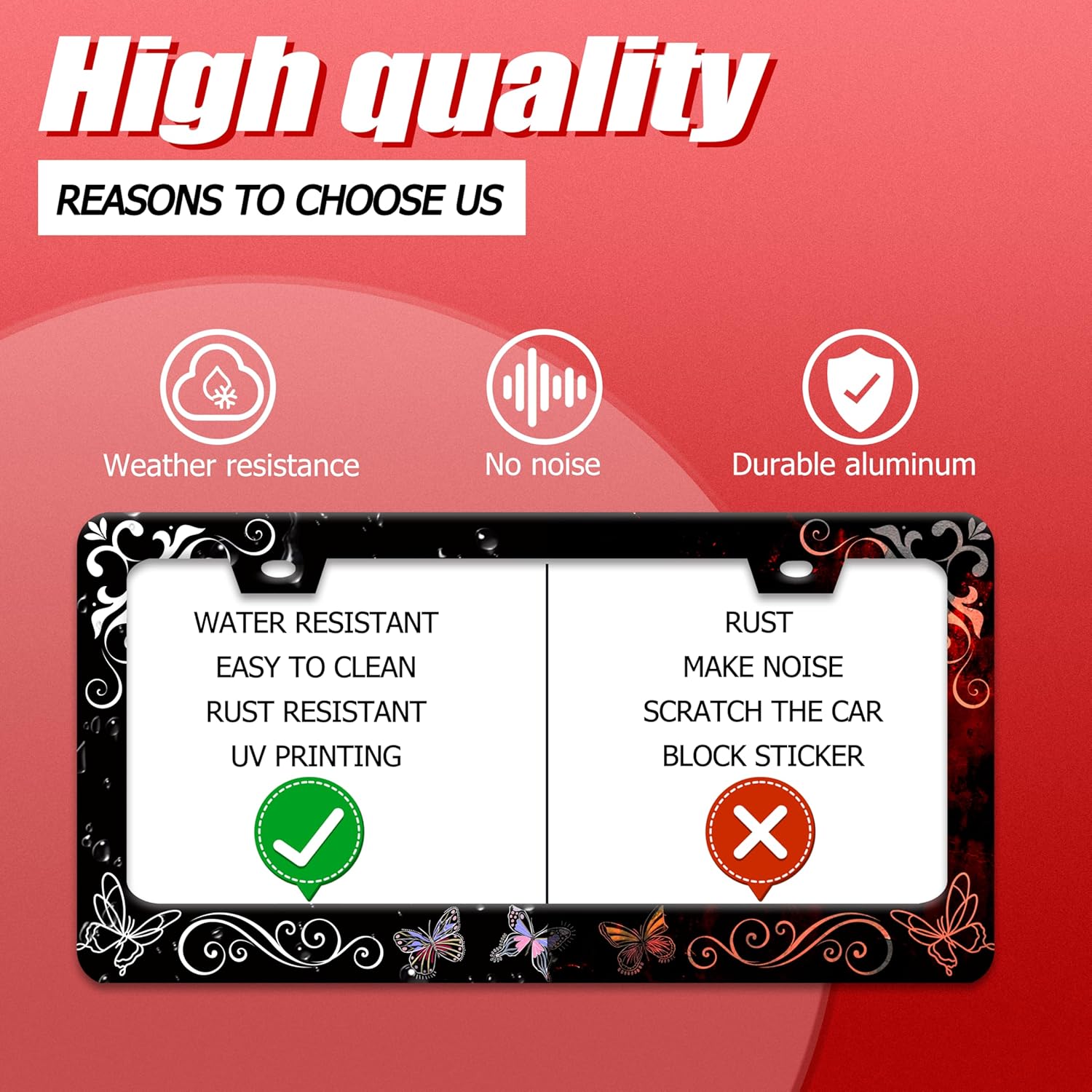 - No Fear Of Wind And Rain: It can be used with confidence in any bad weather conditions,protect our vehicle license plates, and decorate your car.