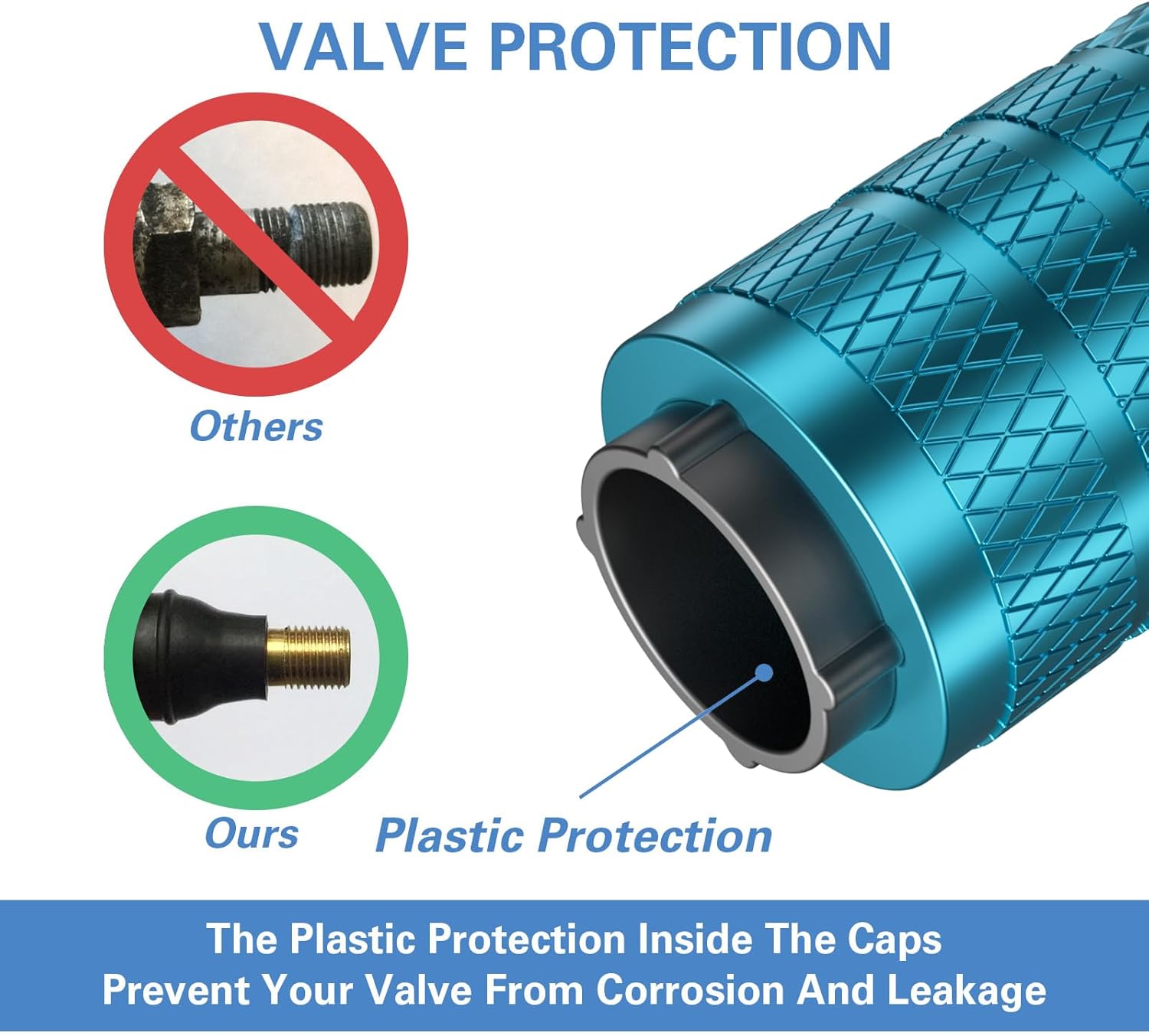 CKAuto Tire Valve Stem Caps, Cyan, 4 pcs/Pack, Anodized Aluminum Tire Valve Cap Set, Corrosion Resistant, Universal Stem Covers for Cars Trucks Motorcycles SUVs and Bikes