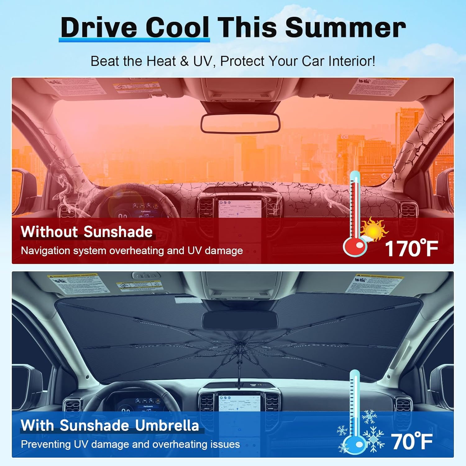 - 1. Sun & Heat Insulation: Windshield Umbrella Sunshade for 2024 2025 Ford Ranger Accessories, 99.9% UV protection, upgraded wrinkle-resistant fabric reflects heat, keeps car cool. Protects interior from fading & cracking, ensuring comfort on hottest days
