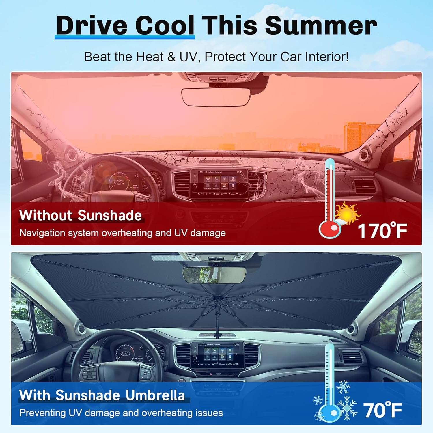 - 5. Portable & Universal Fit: Folding to umbrella size, easy to store and carry. Compatible with 2025 Ridgeline /Equinox/Equinox EV/Grand Highlander/Santa Fe/Ioniq 5/Telluride/Ridgeline/Ranger/Tundra/Sierra/Silverado 1500/Wagoneer/Grand Wagoneer/Enclave, it provides adjustable coverage and adapts to most windshields, with slight adjustments for a better fit