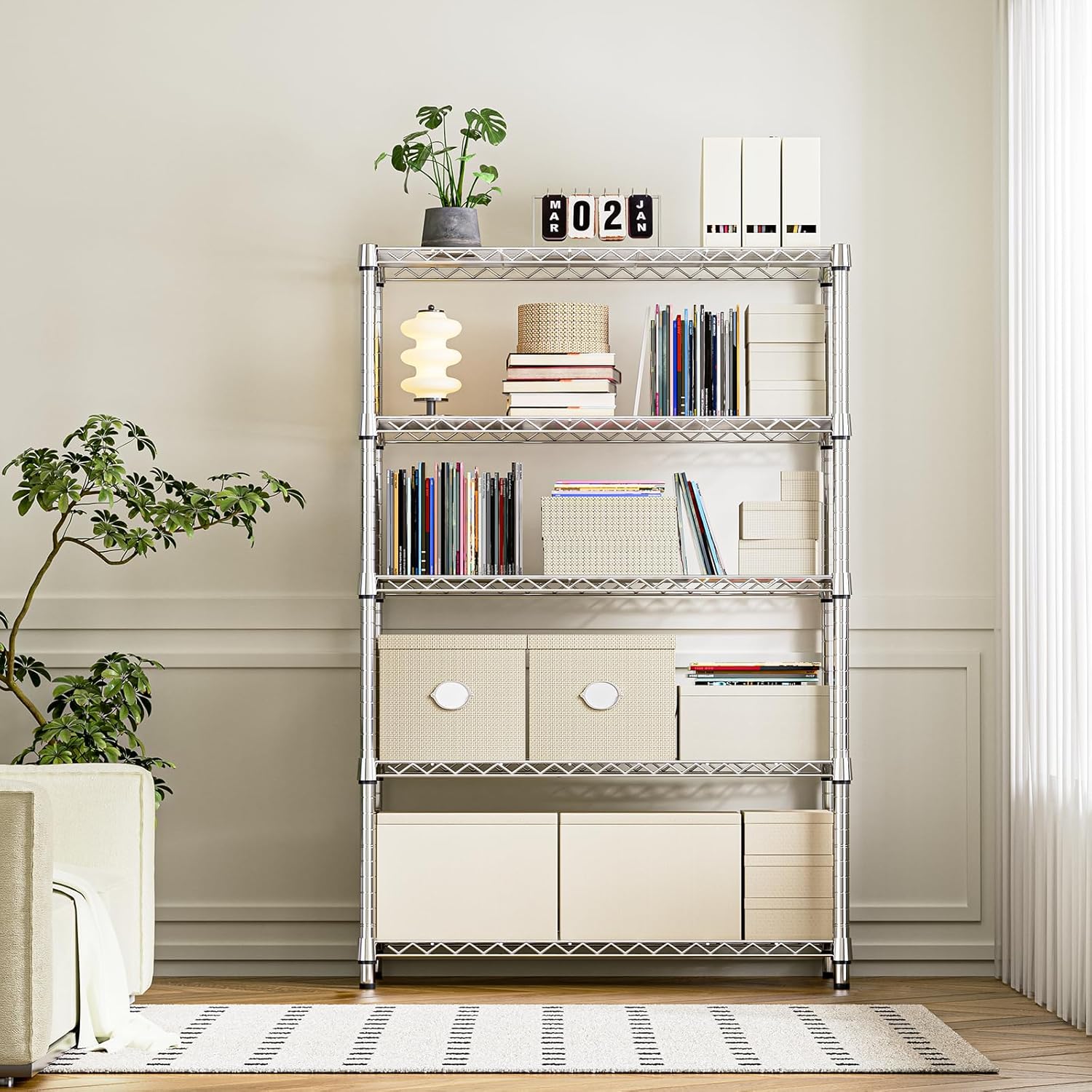 IZEUK 5-Tier Heavy Duty Metal Storage Shelving Unit (Chrome, 17.7" D x 47.2" W x 72.3" H, 1750 lbs Capacity), Adjustable Steel Wire Rack Shelf Organizer for Garage, Kitchen, Pantry, Basement, Laundry