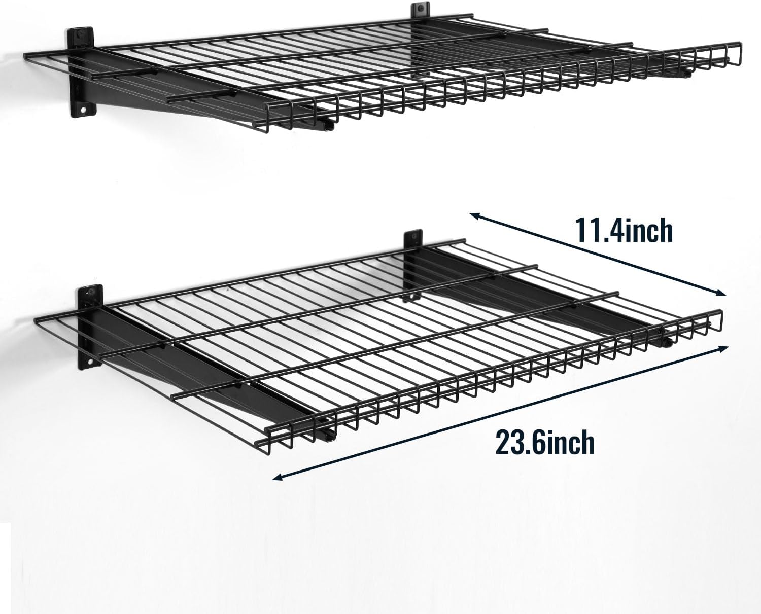 2 Pack Garage Wall Mounted Shelf, 23.6" x 11.4" Heavy Duty Wall Storage Shelves for Garage, Workshop, Laundry Room and Kitchen, Max Load 50 lbs (Black,2 Pack)