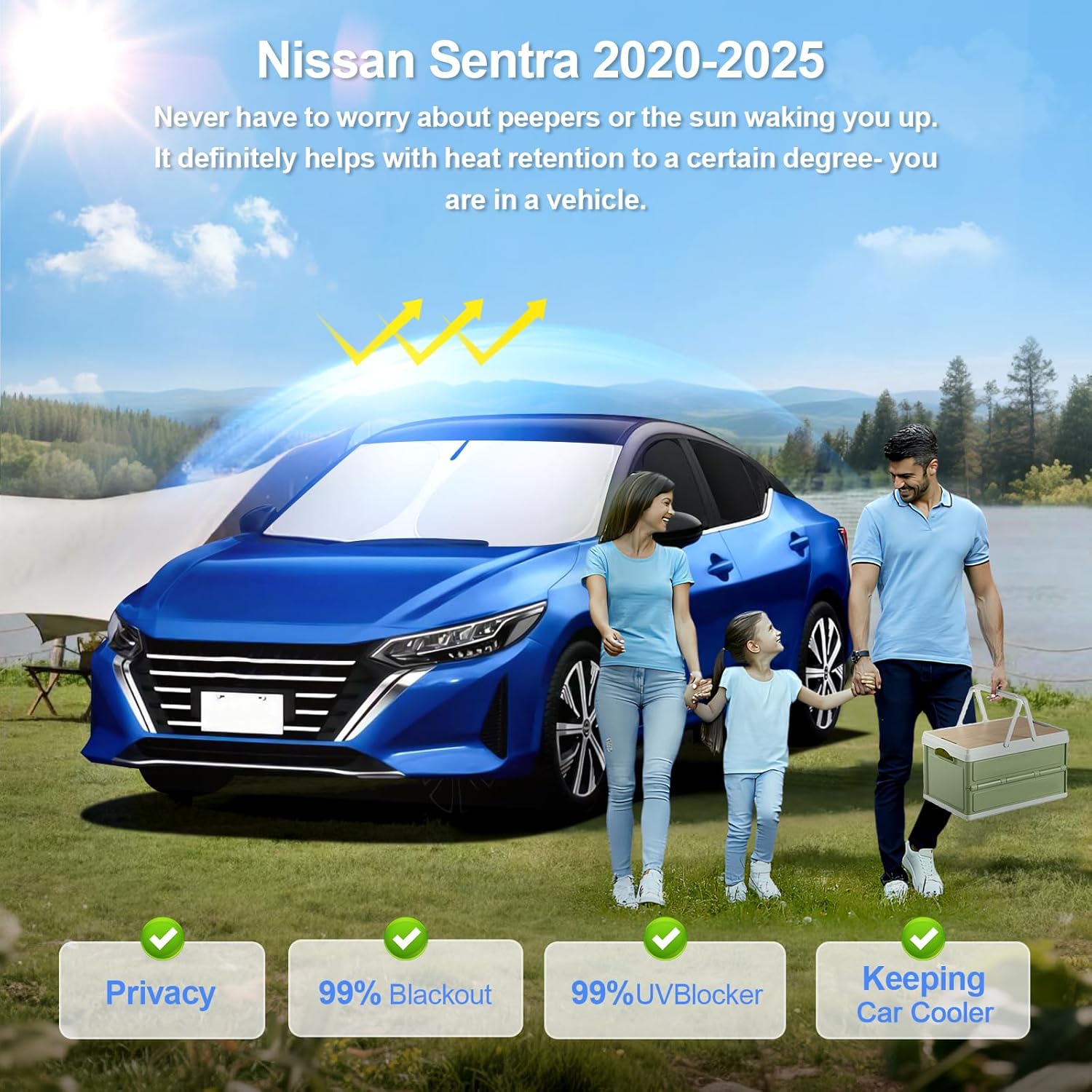 - Designed specifically:SHINELINERS full window sunshade is specially designed for Nissan Sentra 2020 2021 2022 2023 2024 2025.Provide your car with comprehensive UV and infrared protection, not only keeping the interior cool in hot weather but also extending the lifespan of the car's interior
