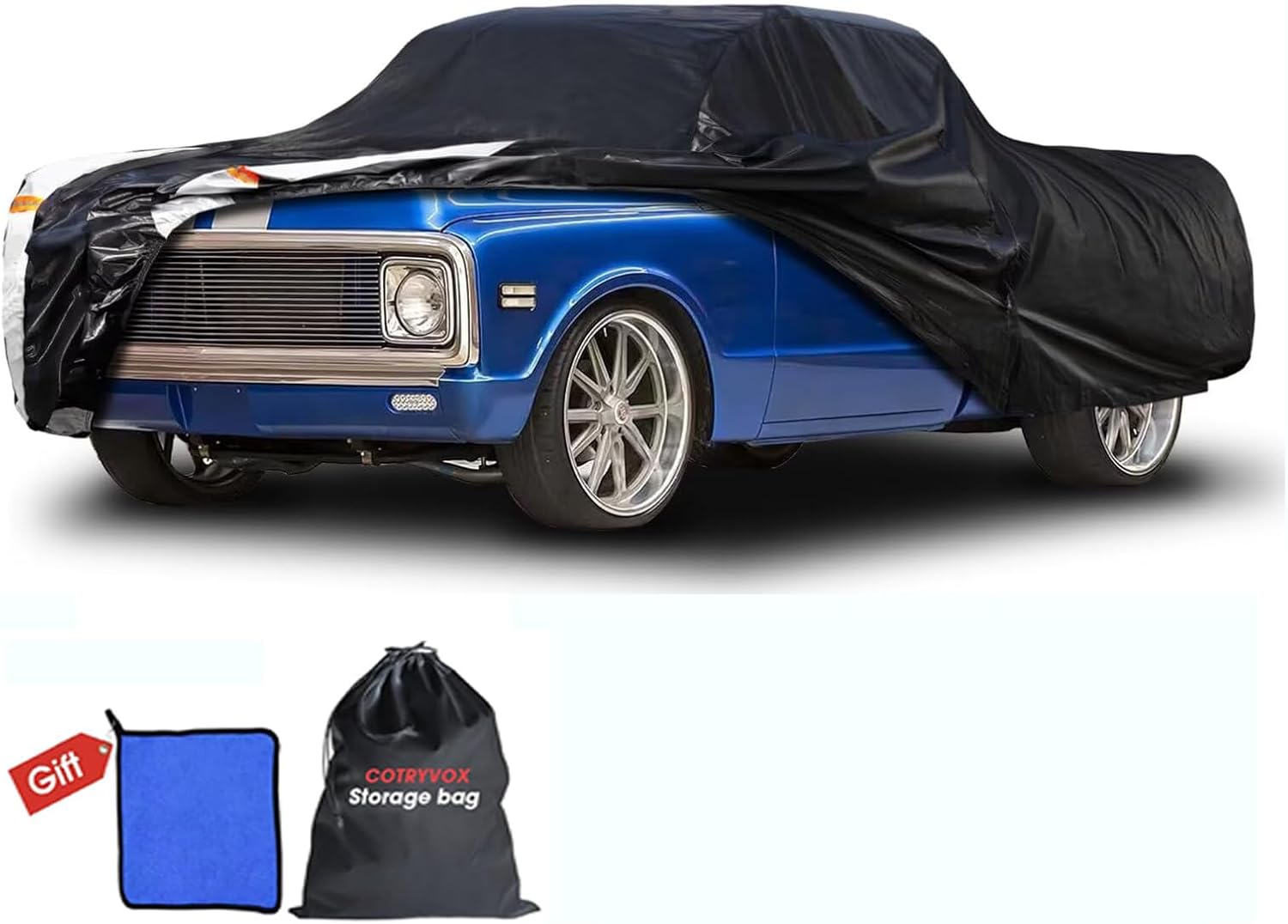 - 【【Custom Fit】Chevy C10 Truck Cover Custom Fit 1960-2002 Standard/Extended/Crew Cab SB (6.5'-6.6') – A uniquely designed, exclusive pickup customization tailored for a perfect fit, offering exceptional protection for your vehicle. The size is ideal for various scenarios, making it the perfect choice for you. As a special gift, we include a storage bag and a towel.