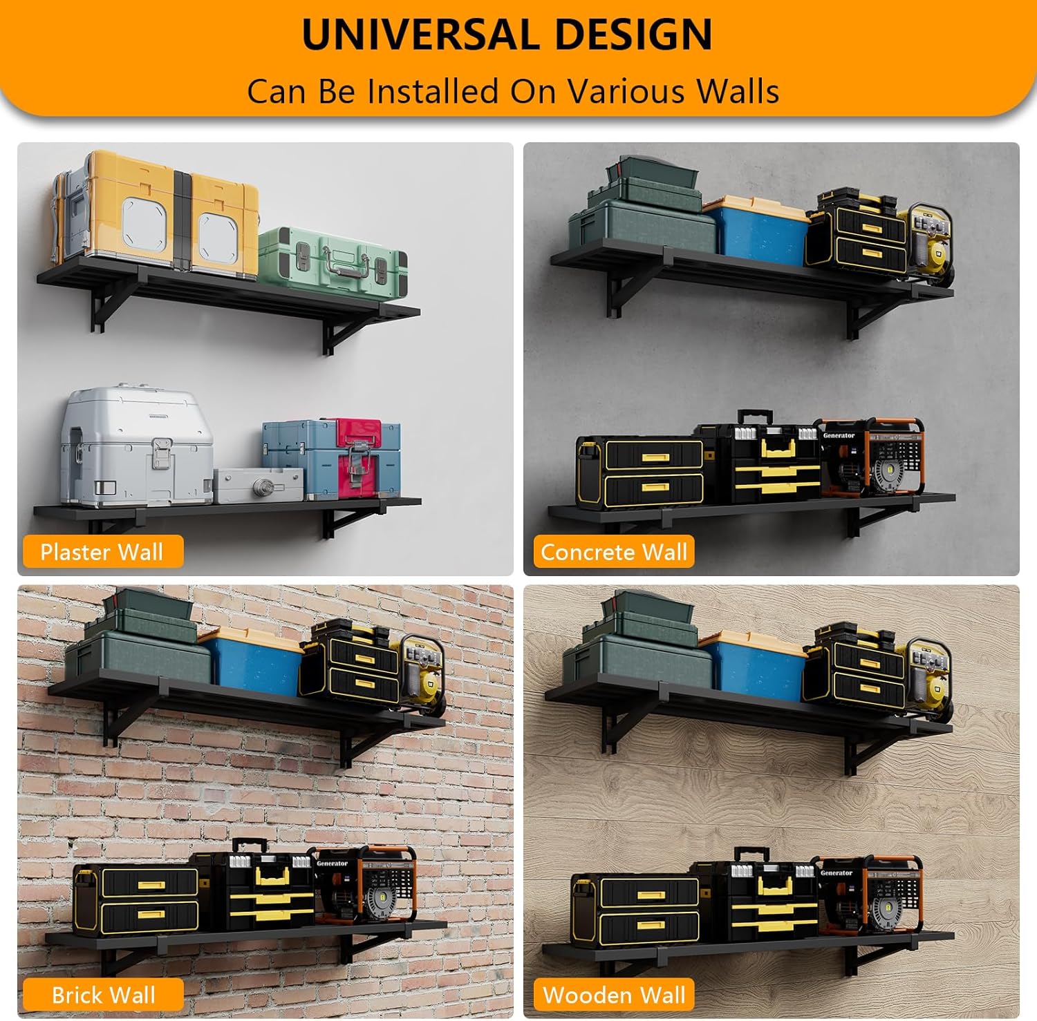 4-Pack 1.5x4ft Garage Shelving Wall Mounted, 1200lbs Load Capacity, Heavy Duty Garage Storage Shelves, Storage Rack, Black