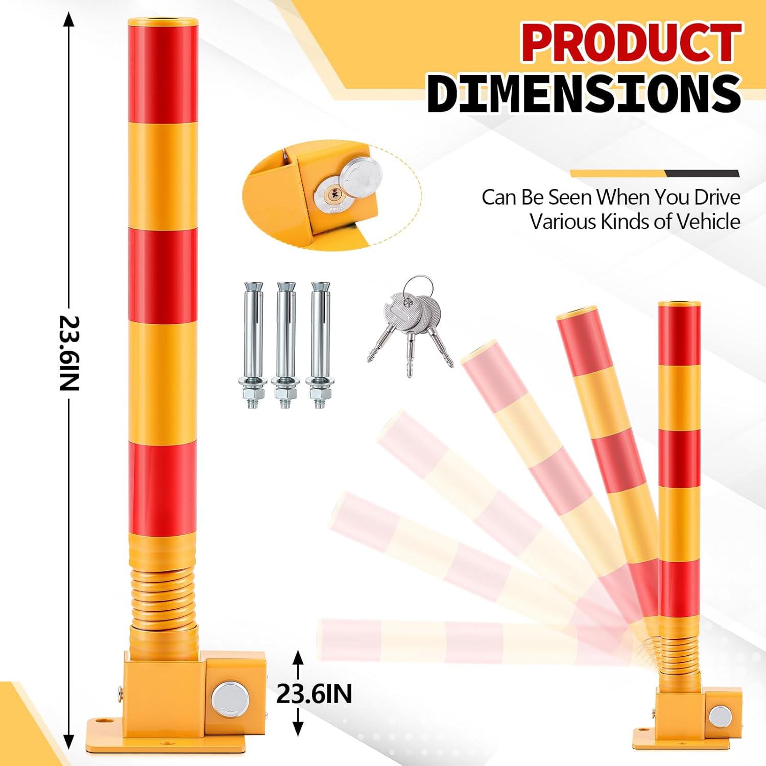 - Universal Application Across Diverse Locations: the Spring Parking Post Folding is designed to be functional and can be seamlessly applied to a range of settings including driveways, garages, parking lots, front yards, and private parking spaces; Its adaptability ensures that it meets the needs of different environments and scenarios, making it an ideal choice for a wide spectrum of users