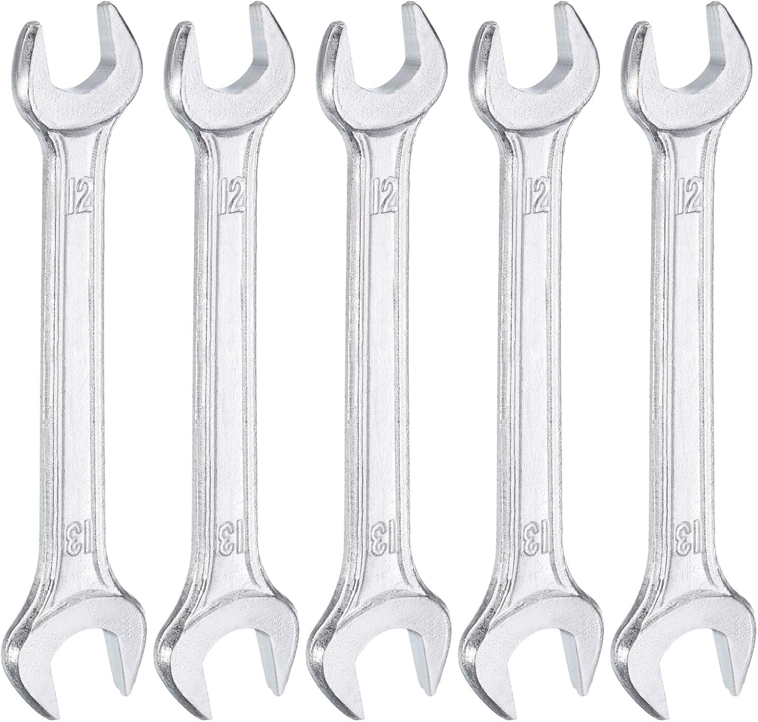 HARFINGTON 5pcs Double Open End Wrench 12mm x 13mm Metric 15 Degree Offset Angle Small Flat Head Wrench Galvanizing Open Ended Spanner for Automotive Repair Furniture Assembly