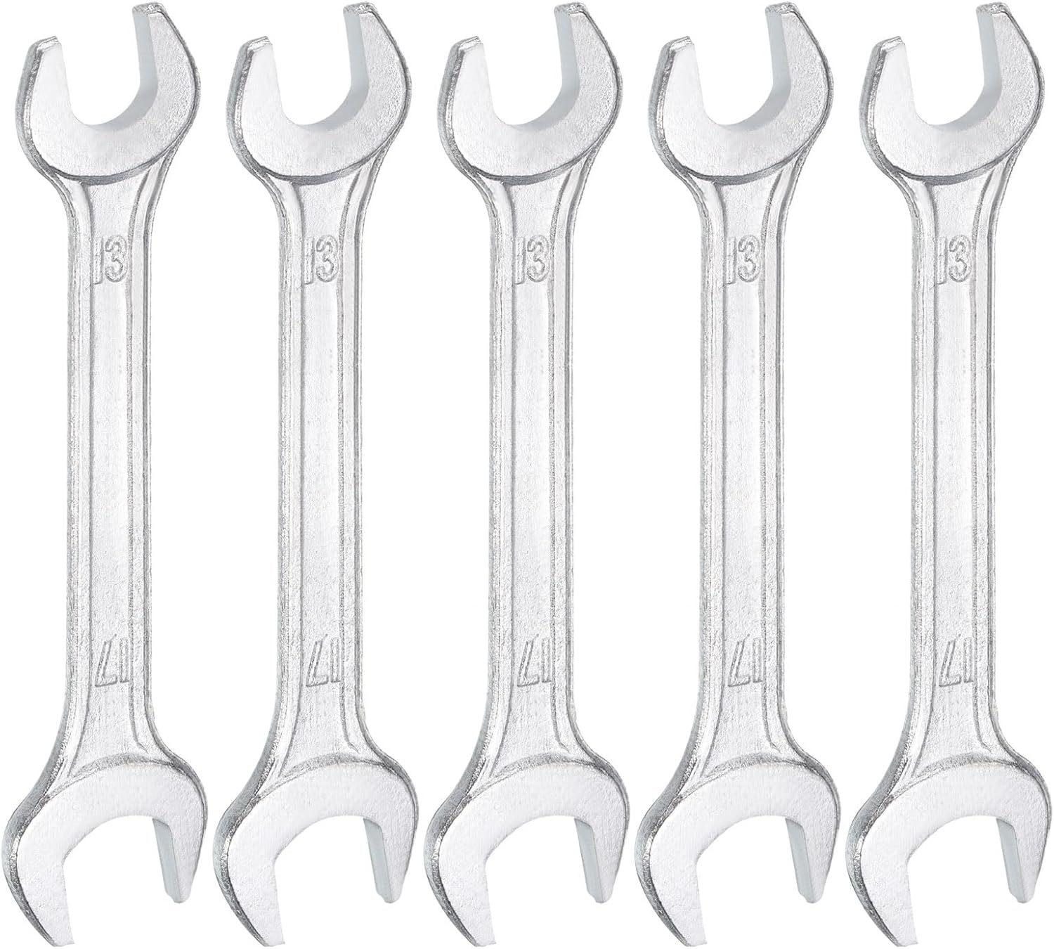 HARFINGTON 5pcs Double Open End Wrench 13mm x 17mm Metric 15 Degree Offset Angle Small Flat Head Wrench Galvanizing Open Ended Spanner for Automotive Repair Furniture Assembly