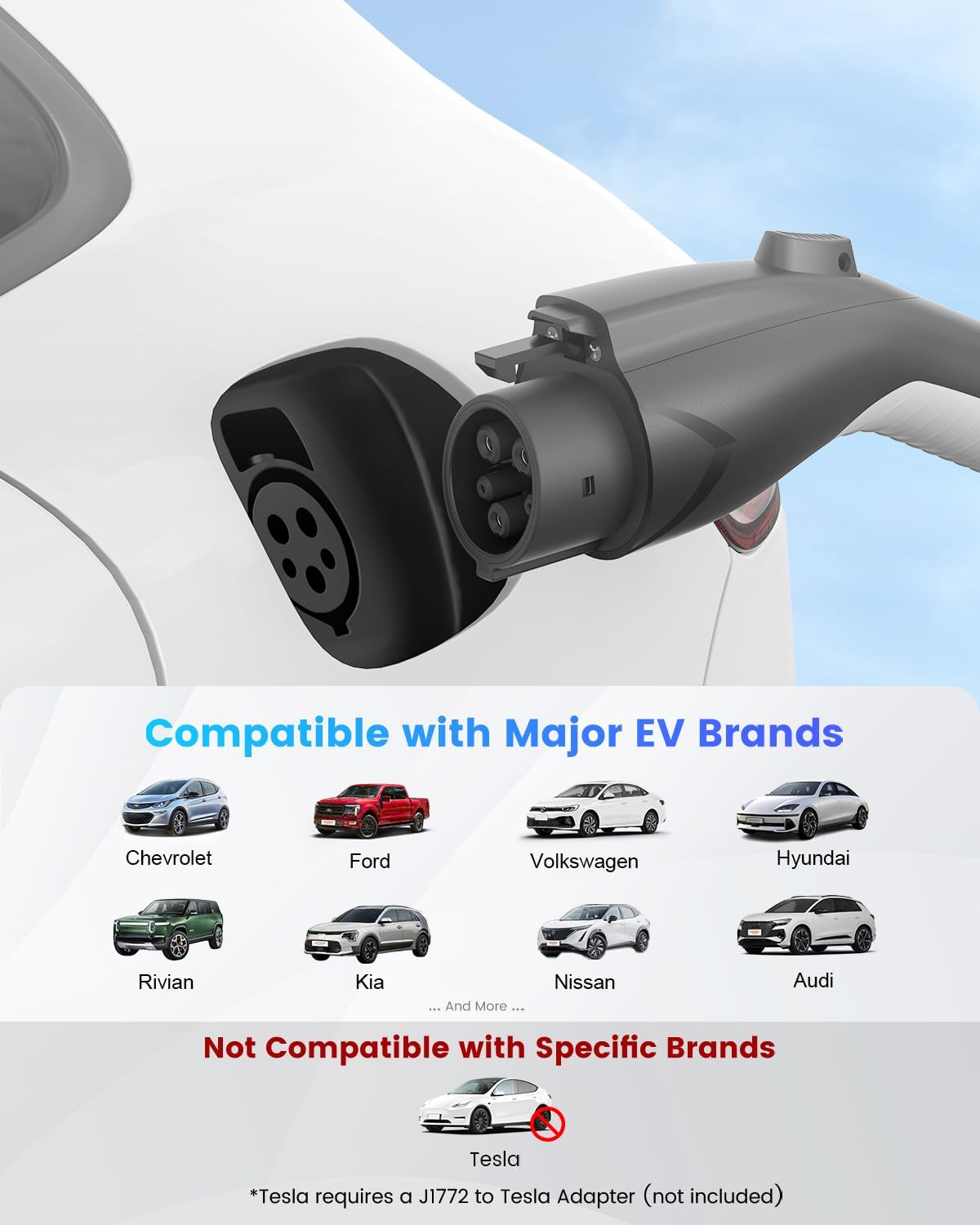- Plug & Charge with Home Dryer Outlets NEMA 14-30 — Fits Most EVs Except Tesla. EVDNACE 24A LEVEL 2 Charger connects directly to standard 240V NEMA 14-30 dryer outlets, while avoiding other common 120V/240V outlets like 5-15, 5-20, 6-50, or 14-50 (plug adapter needed). This J1772 Charger powers popular Chevy Bolt EV, Ford Mustang Mach-E, Hyundai Kona EV, and most J1772-compatible vehicles. Tesla charging requires a separate J1772-to-Tesla adapter(sold separately).
